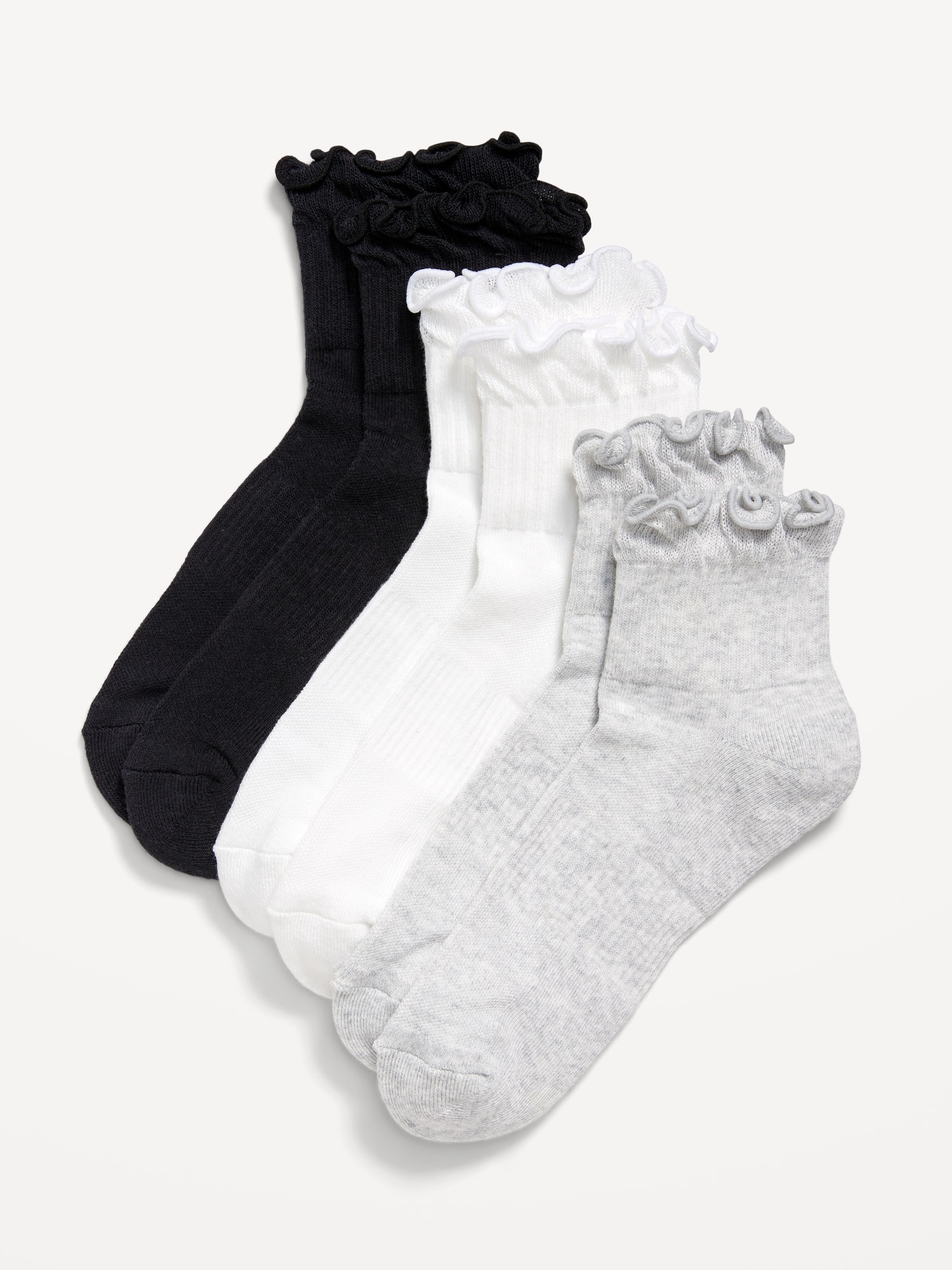 Ruffled Athletic Socks 3-Pack: includes 3 pairs of solid socks for women, ruffled openings, notched toe seams, #691669