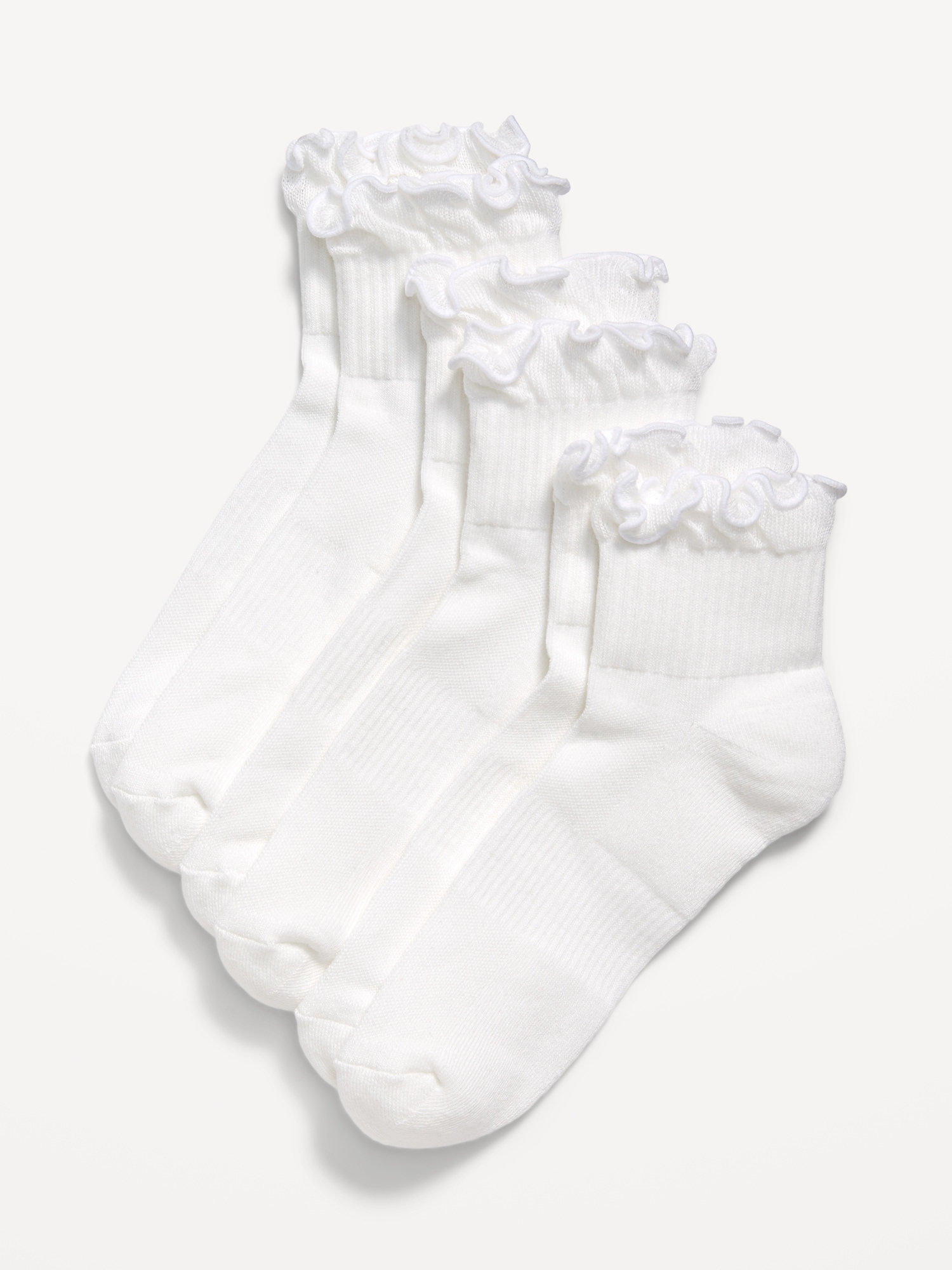 Ruffled Athletic Socks 3-Pack: includes 3 pairs of solid socks for women, ruffled openings, notched toe seams, #691669