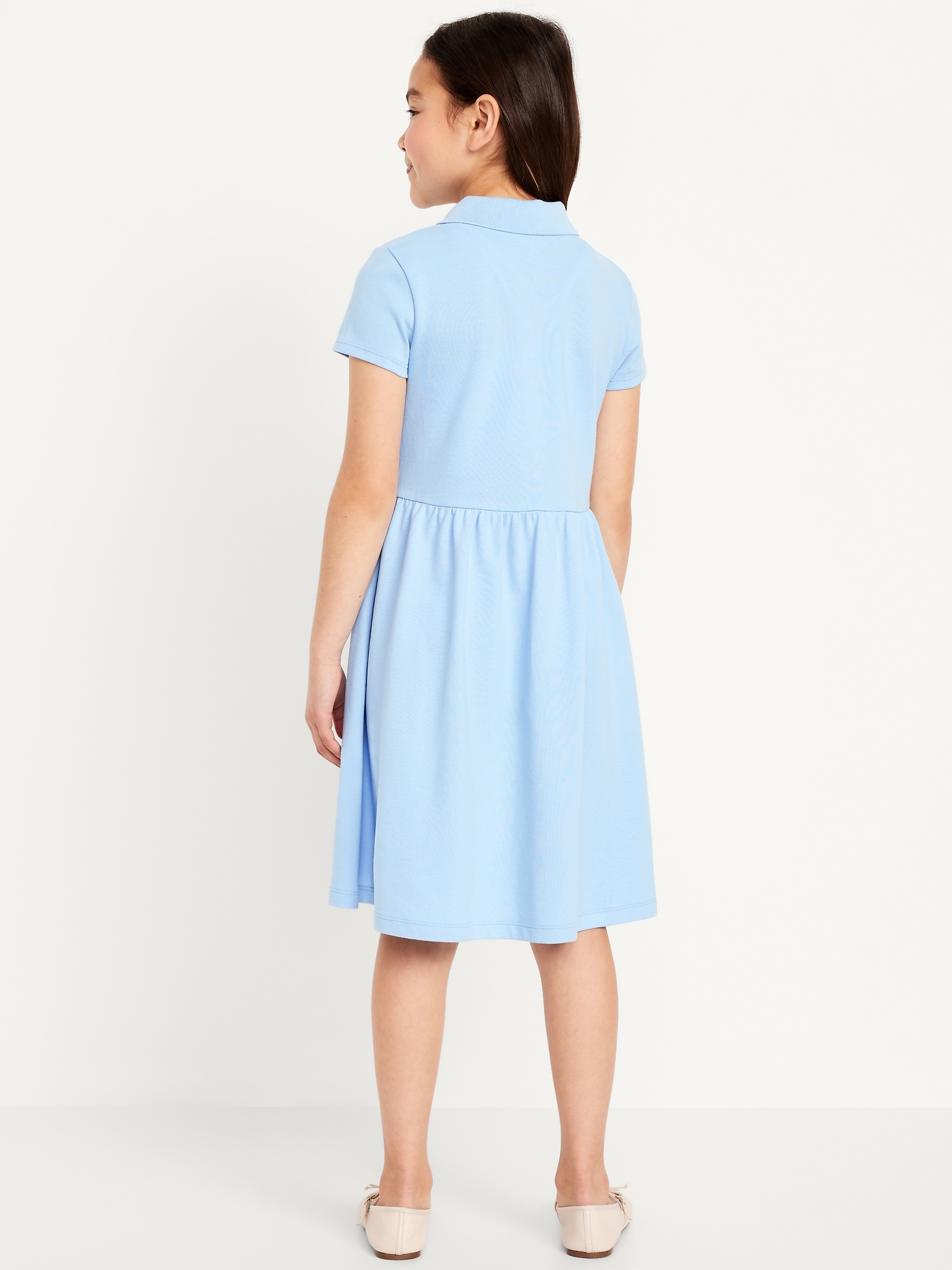 School Uniform Fit and Flare Pique Polo Dress for Girls