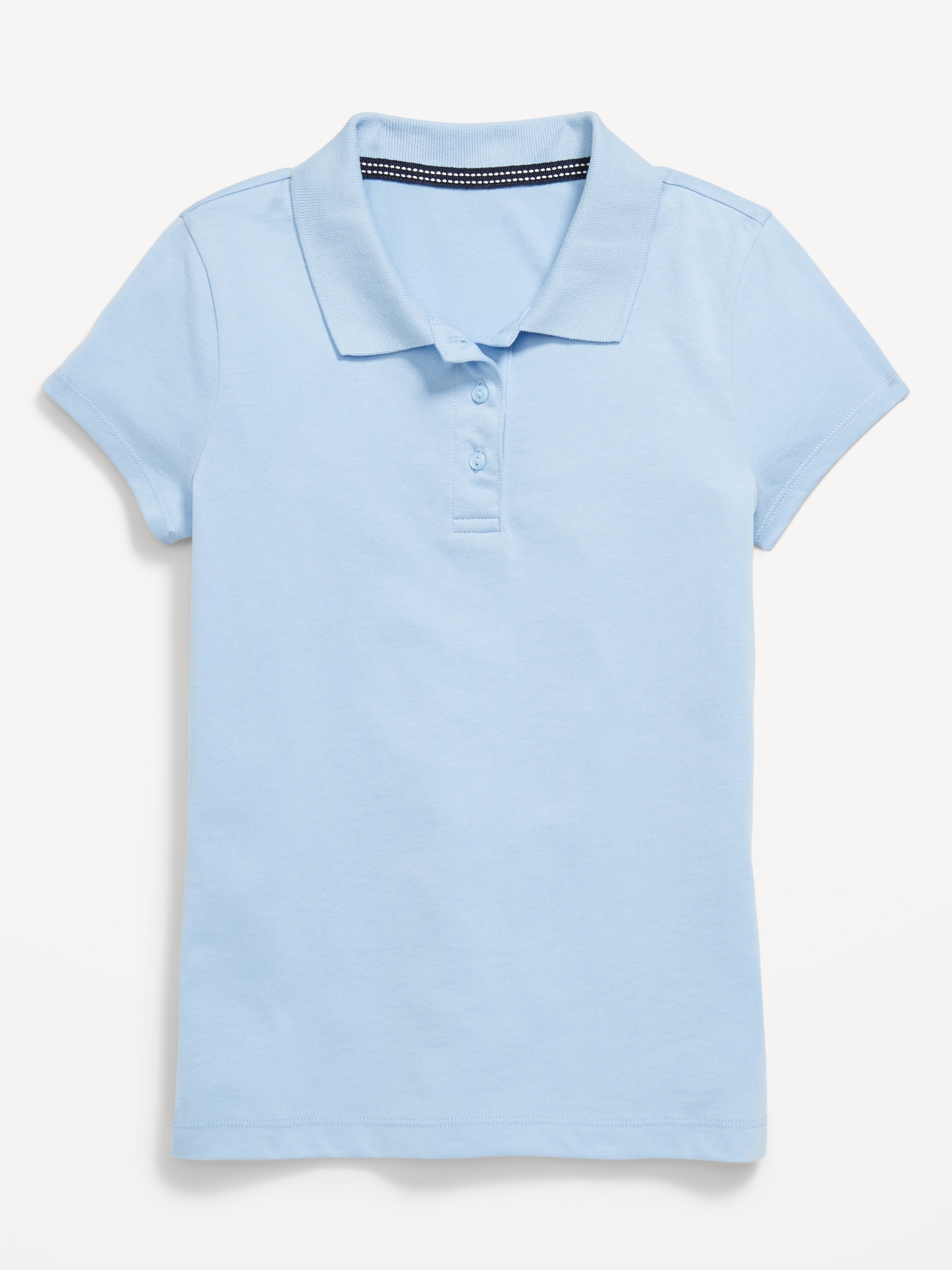 School Uniform Jersey-Knit Polo Shirt for Girls: rib-knit collar, short sleeves, three-button placket, vented sides at hem, #766960