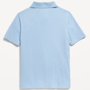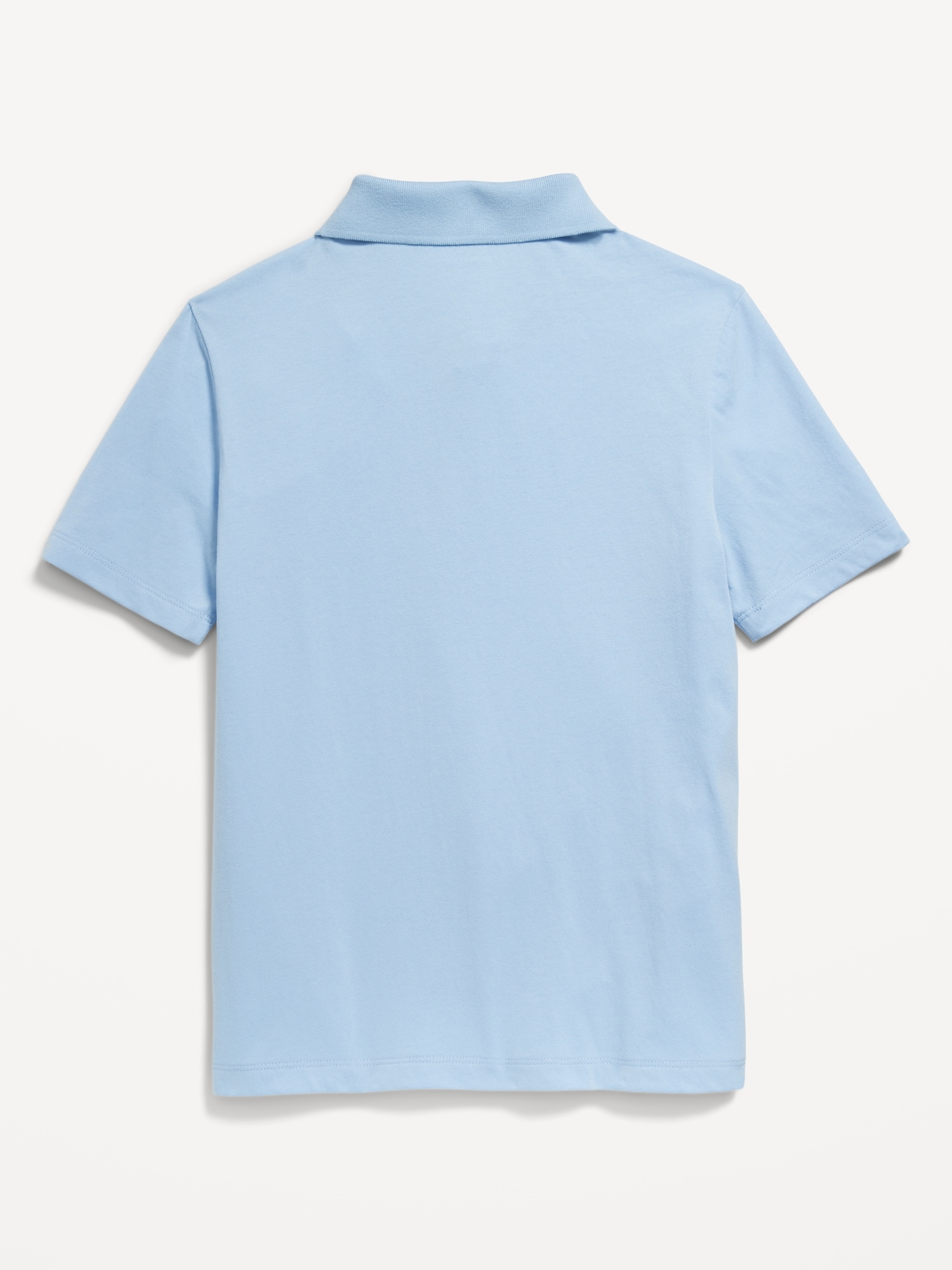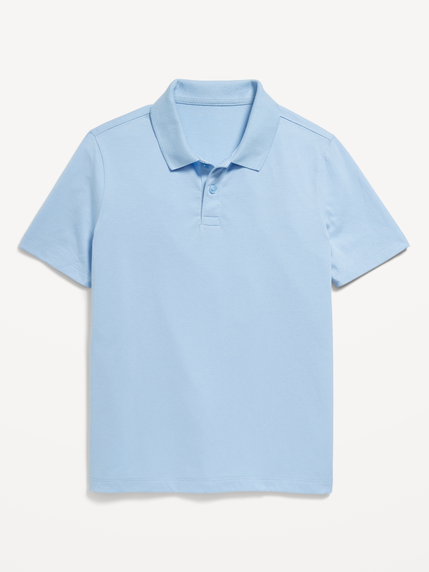 School Uniform Jersey Polo Shirt for Boys: rib-knit collar, two-button placket, short sleeves, #621877