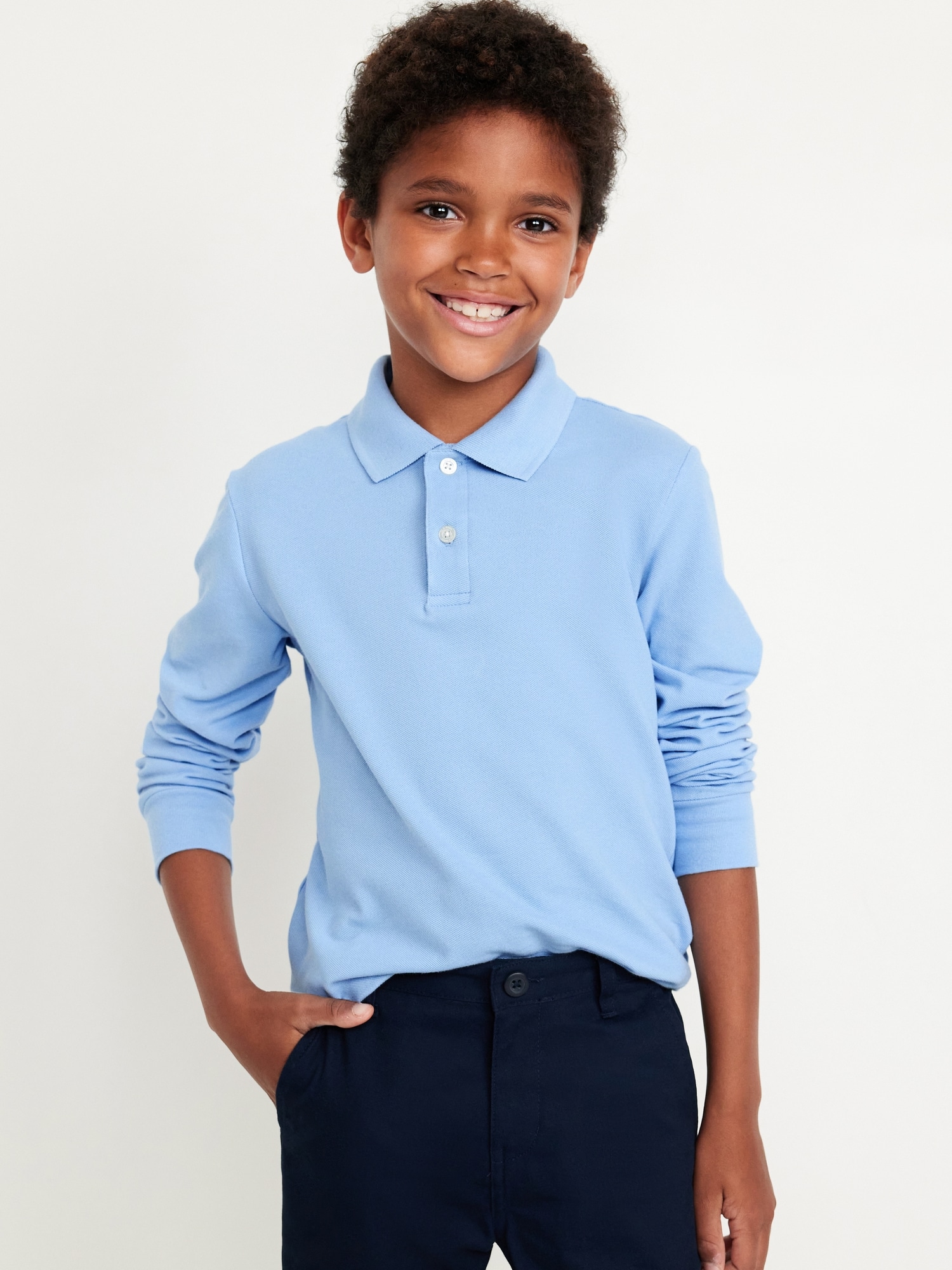 School Uniform Long-Sleeve Polo Shirt for Boys: Uniform Guarantee: Uniforms may be returned for a full refund with the original receipt for 365 days from the date of purchase.rib-knit collar, long-sleeves, two-button placket, online exclusive, #447305