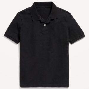 School Uniform Polo Shirt 3-Pack for Boys: pointed rib-knit collar, short sleeves, two-button placket, straight hem, #769950