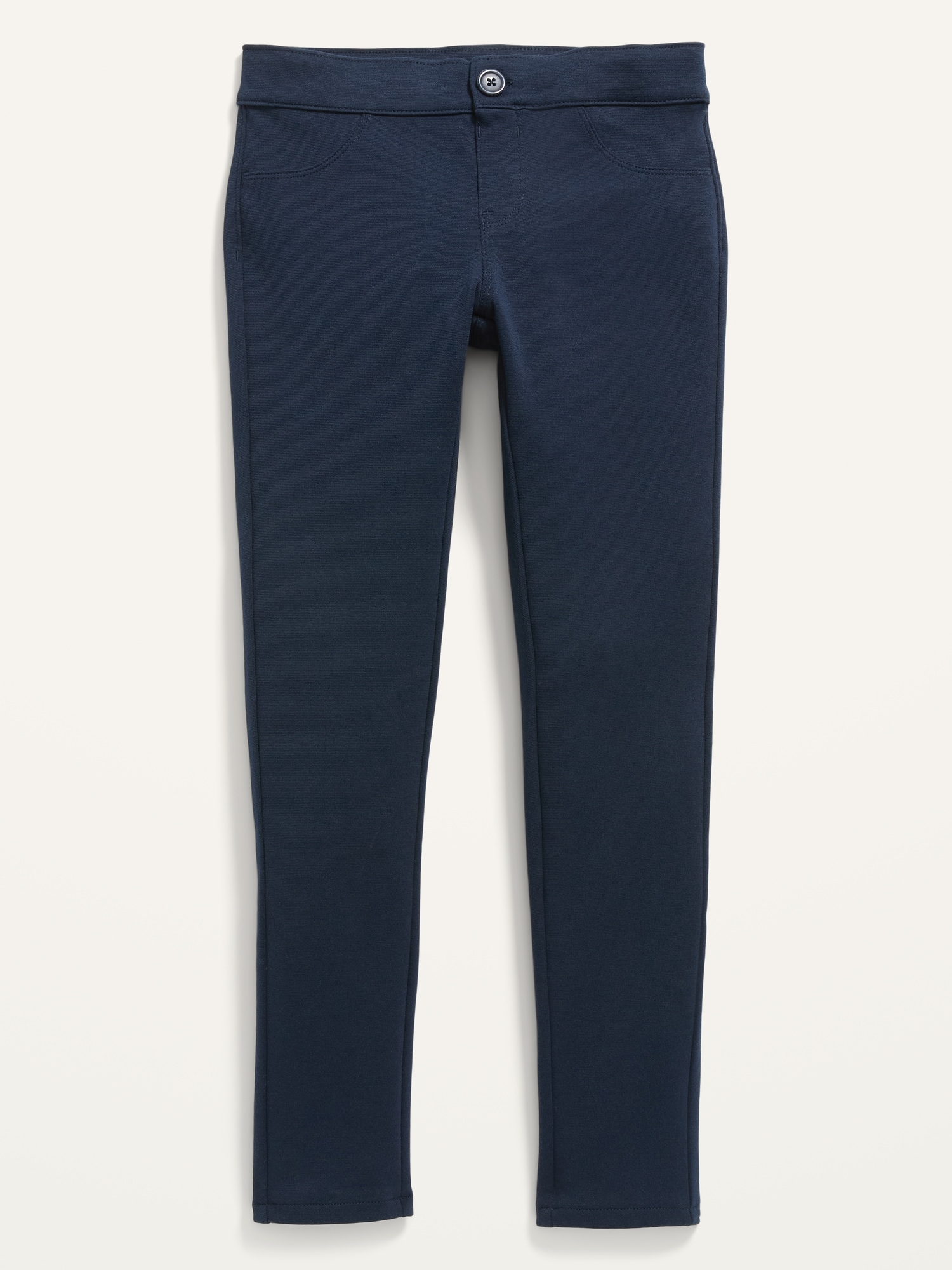 School Uniform Ponte-Knit Jeggings for Girls: Uniform Guarantee: Uniforms may be returned for a full refund with the original receipt for 365 days from the date of purchase.interior adjustable waistband, regular button closure, decorative scoop pockets at front, decorative welt pockets at back, faux fly, #877991