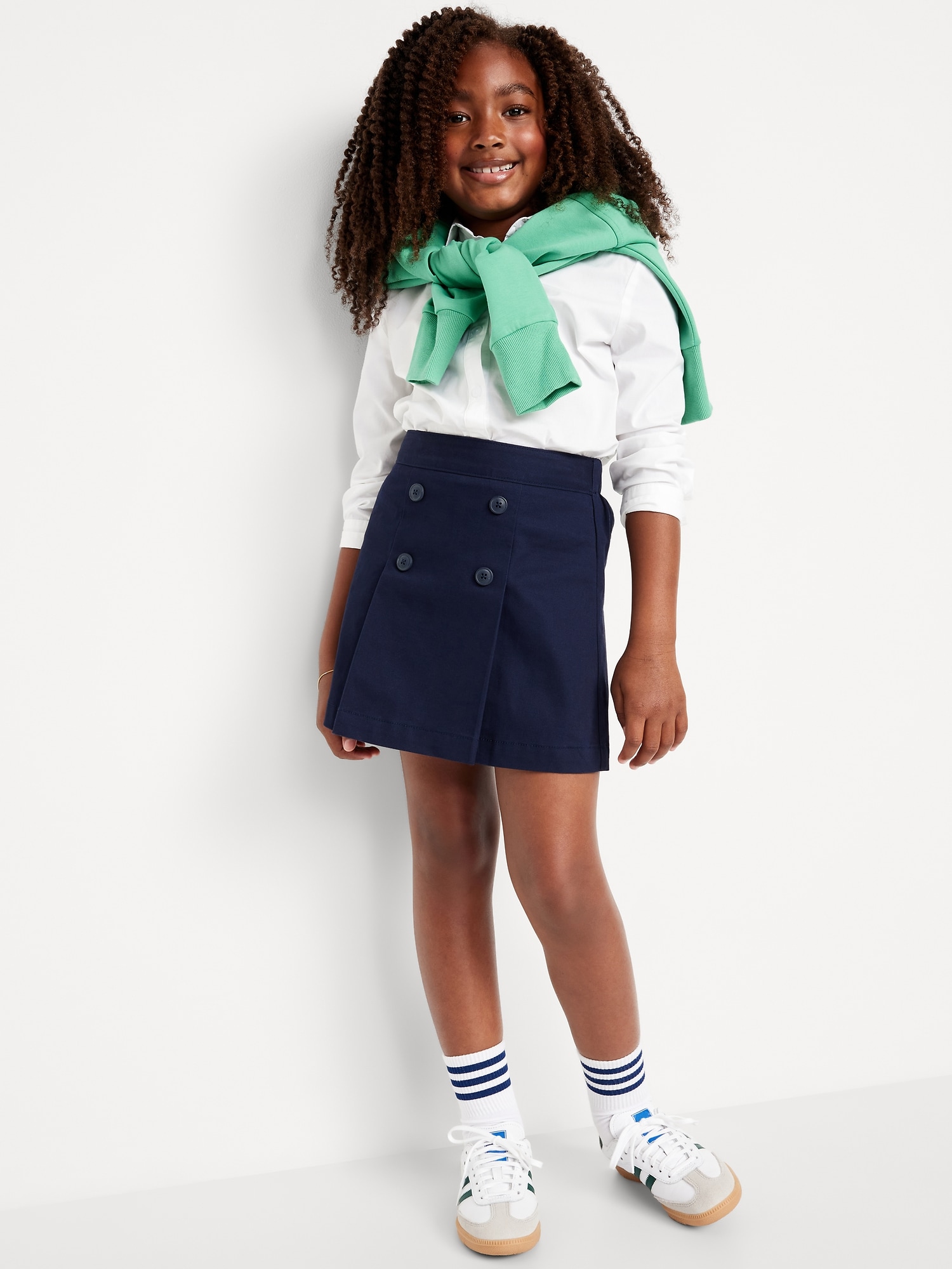 School Uniform Skort for Girls: built-in shorts, elasticized back, pleated, decorative buttons at front, easy pull-on style, #766645