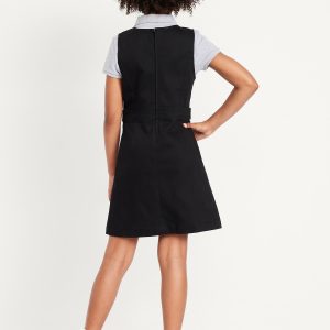 School Uniform Sleeveless Pleated Dress for Girls: scoop neck, sleeveless, full length zipper at back, decorative button tabs at waist, pleated skirt, #766641