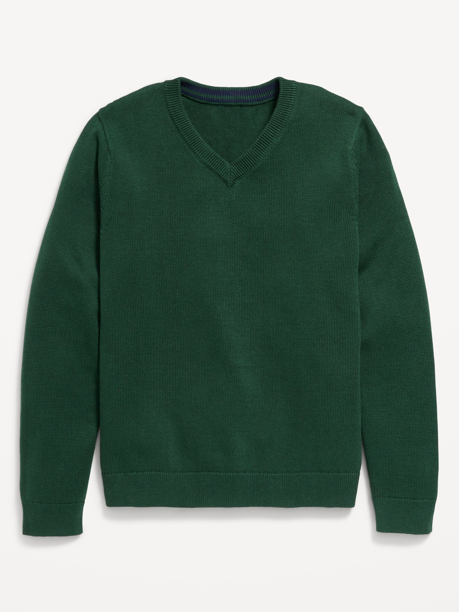 School Uniform Solid V-Neck Sweater for Boys: Uniform Guarantee: Uniforms may be returned for a full refund with the original receipt for 365 days from the date of purchase.rib-knit v-neck, long sleeves, online exclusive, #599132