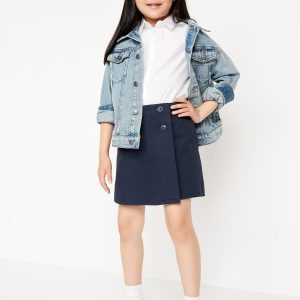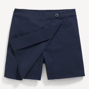 School Uniform Wrap-Front Skort for Girls: built-in shorts, elasticized back waist, decorative buttons, easy pull-on style, online exclusive, #766640