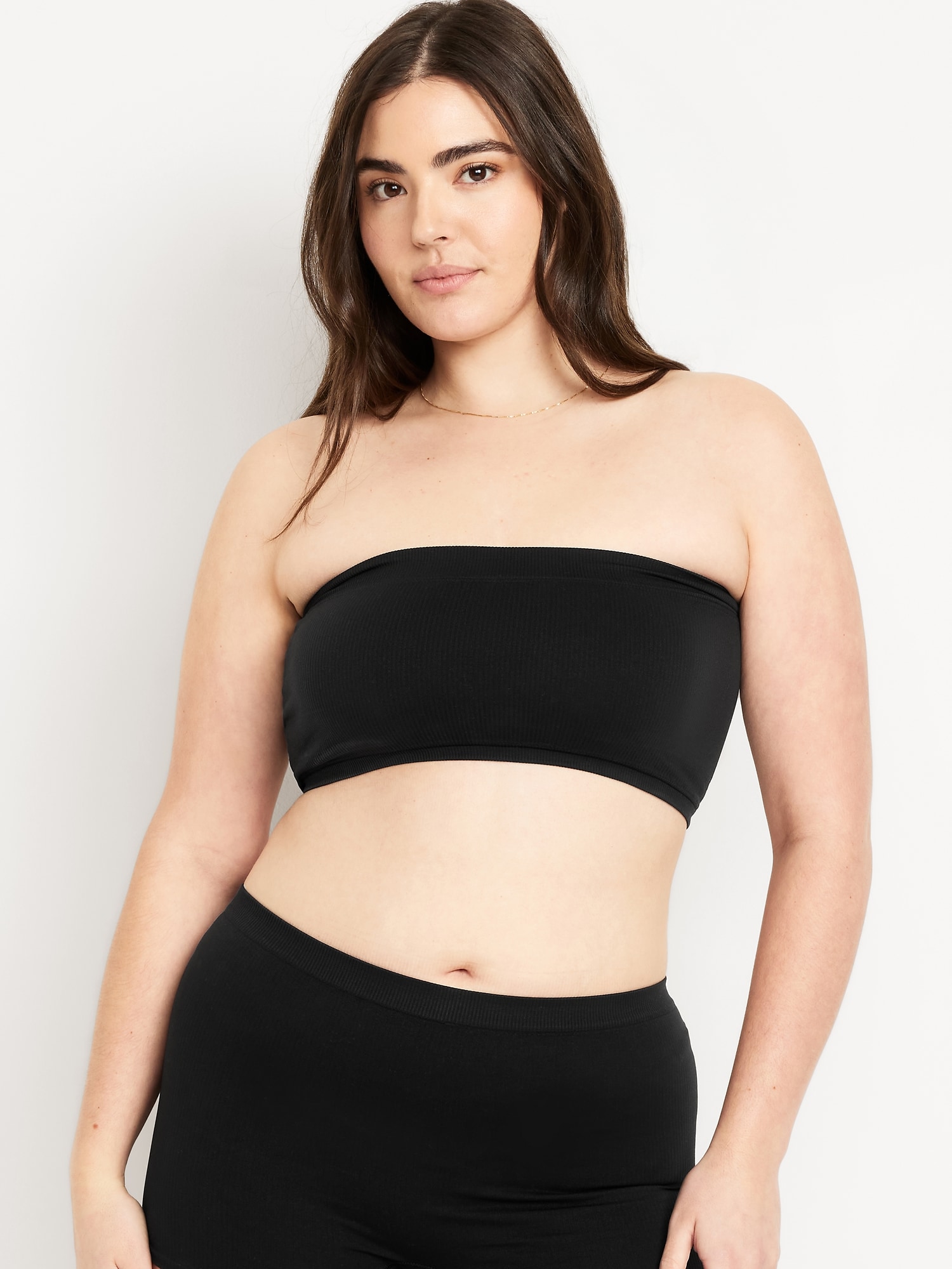 Seamless Ribbed Longline Bandeau Bra: Smooth, soft nylon for barely-there feels.strapless, #687038