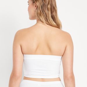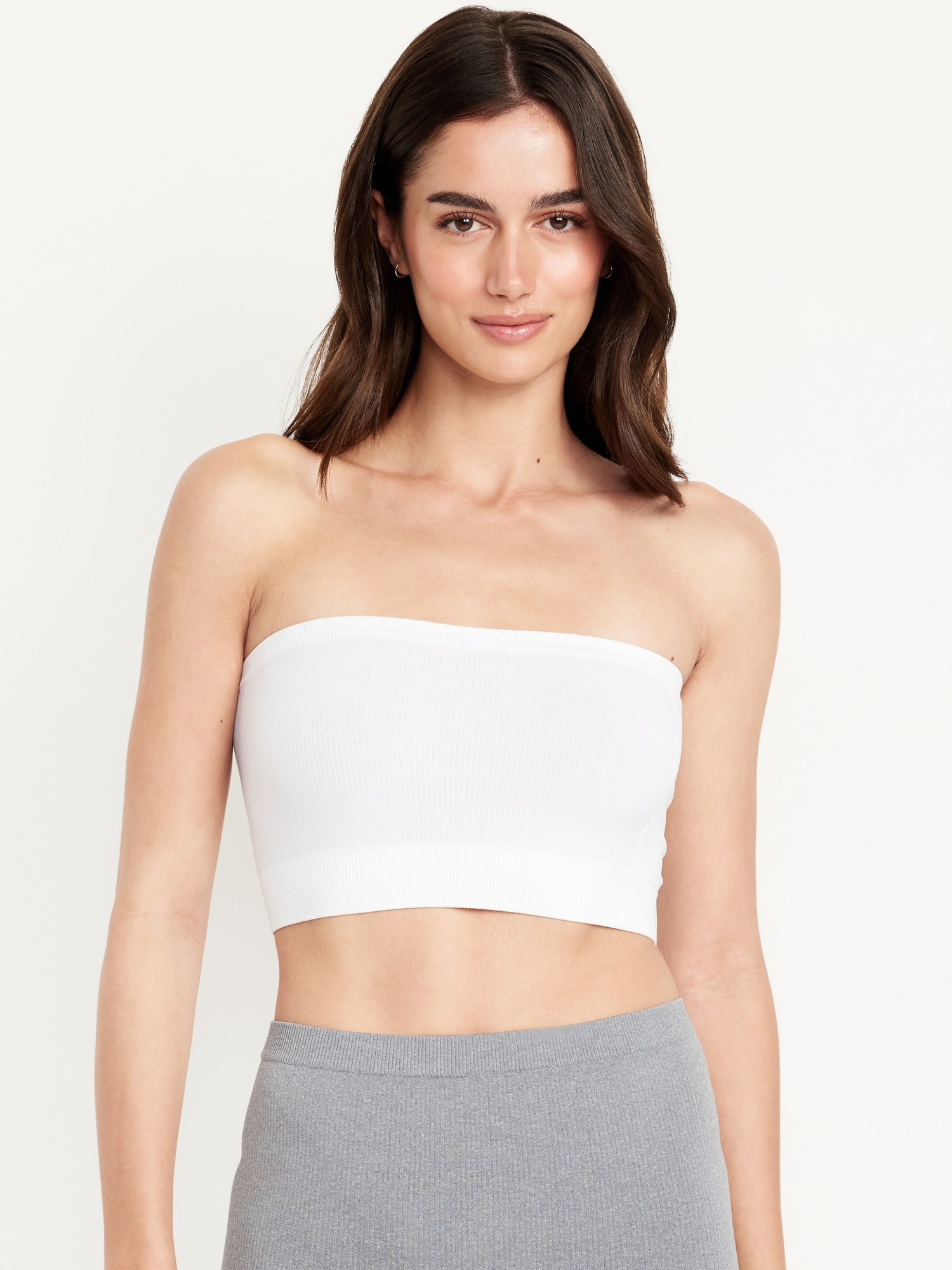 Seamless Ribbed Longline Bandeau Bra: Smooth, soft nylon for barely-there feels.strapless, #687038