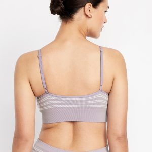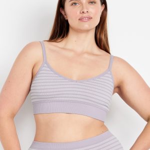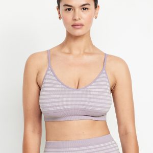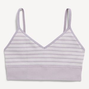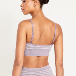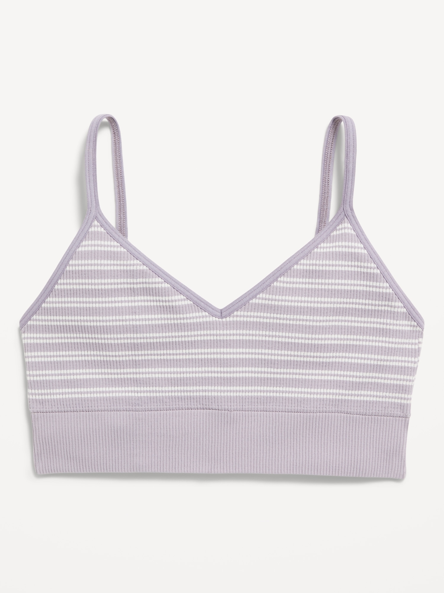 Seamless Ribbed Longline Bralette: soft v-neck, adjustable elastic straps, #800557