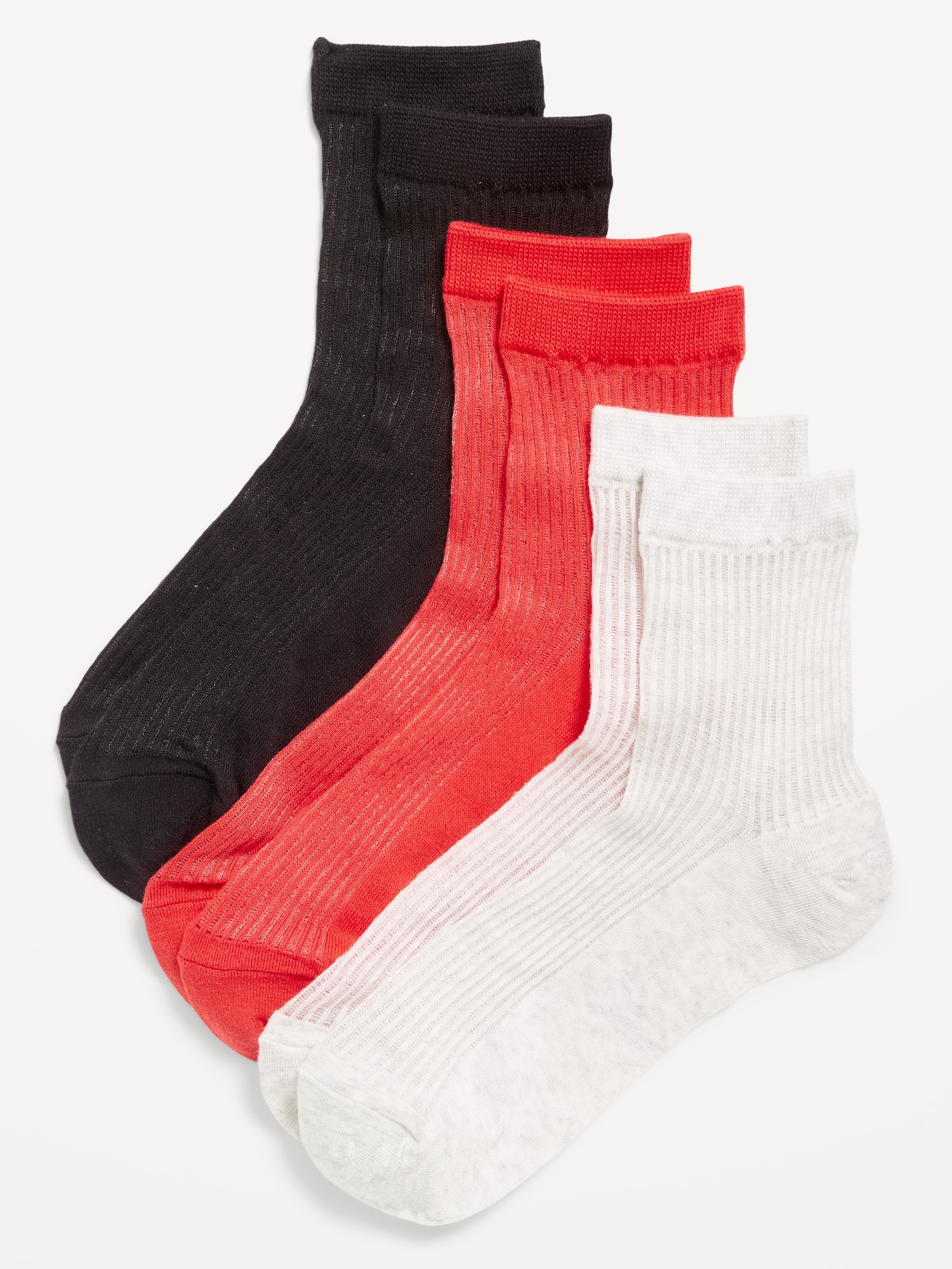Sheer Stripe Quarter Crew Socks 3-Pack for Women