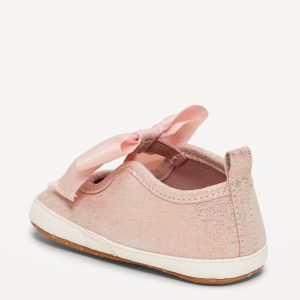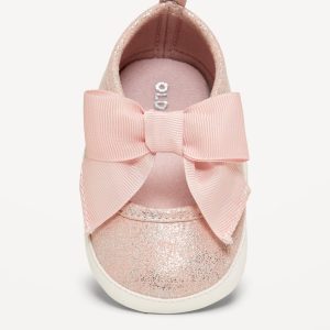 Shiny Faux-Suede Bow Sneakers for Baby: decorative bow across foot, cushioned foot bed, gripper dots at outsole, pull tab at heel, #800492
