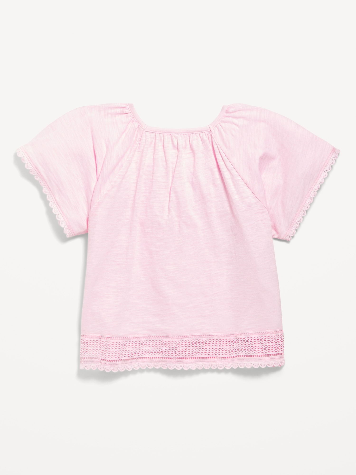Short Flutter-Sleeve Crochet-Trim Top for Girls