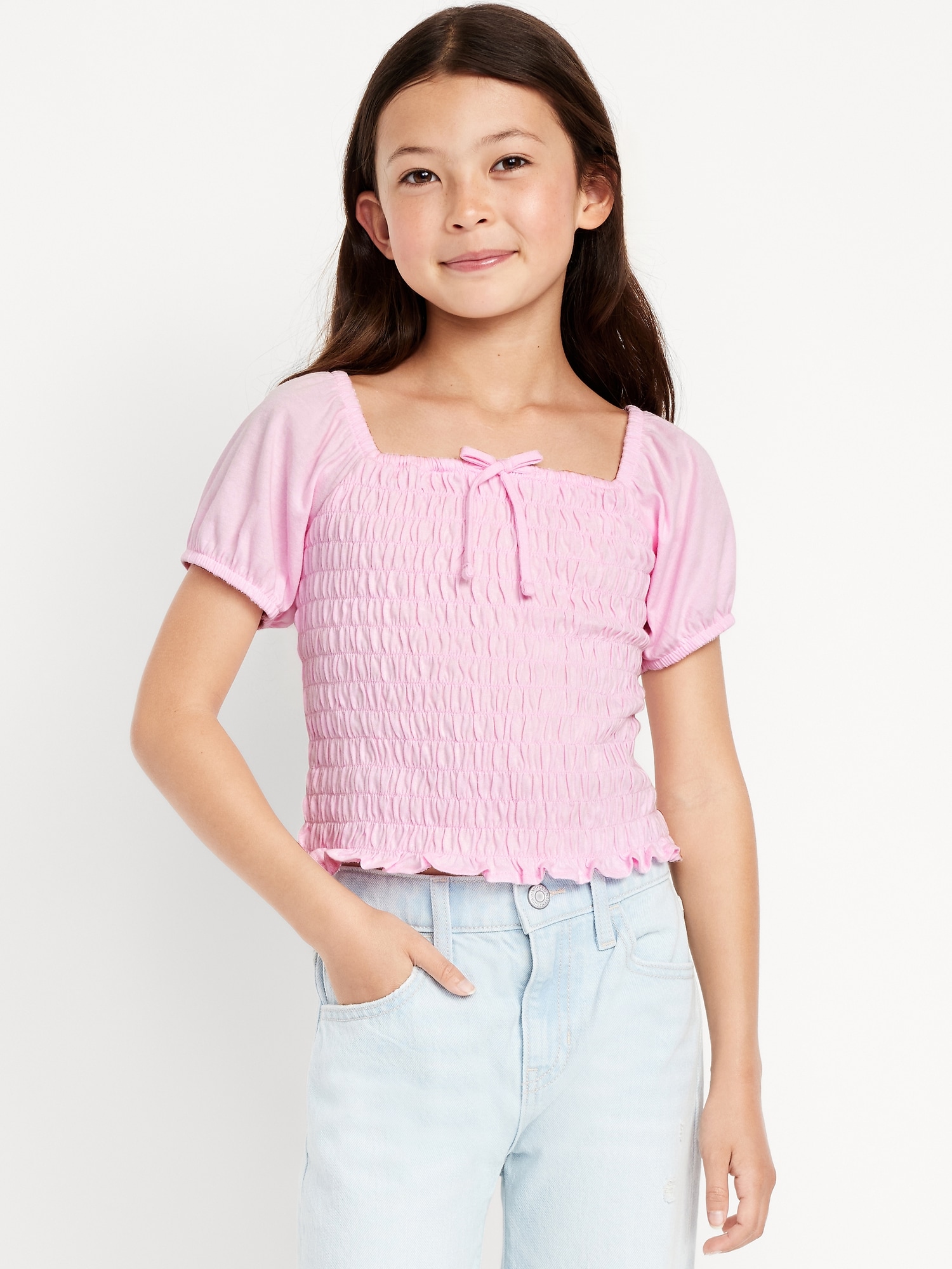 Short Puff-Sleeve Smocked Top for Girls: square neckline, short puff sleeves, smocked bodice, #767944