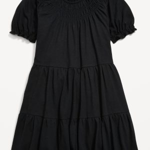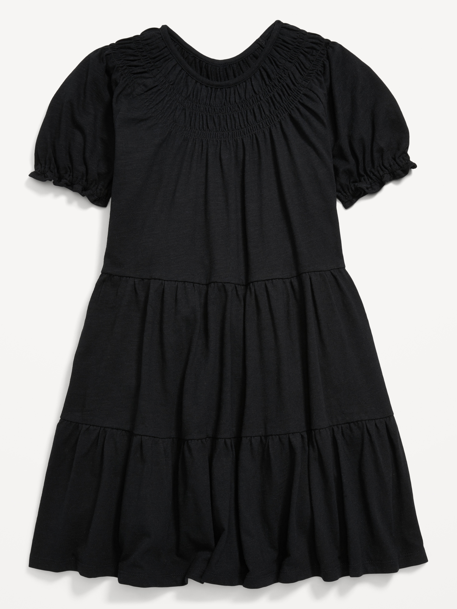 Short Puff-Sleeve Tiered Swing Dress for Girls