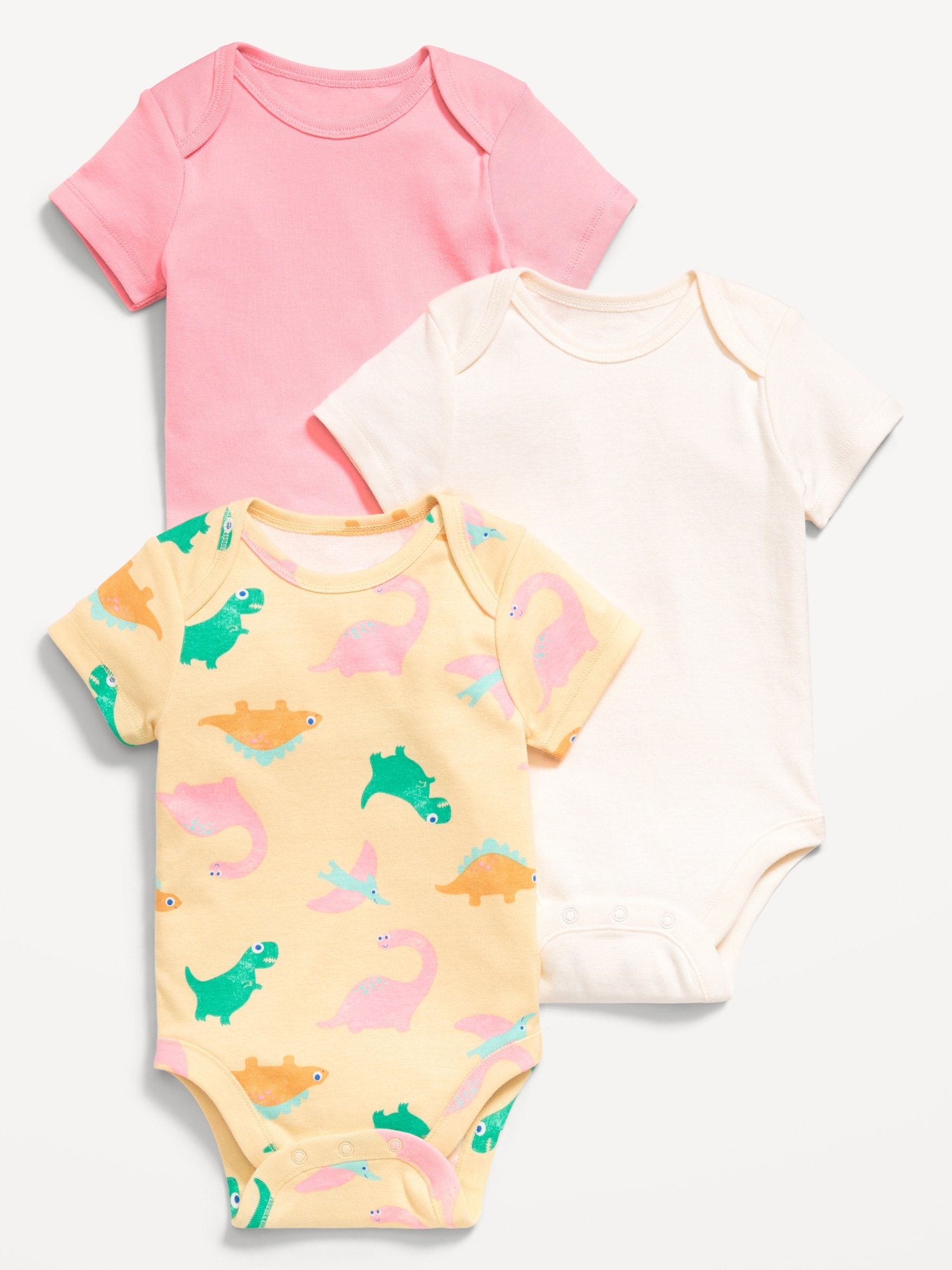 Short-Sleeve Bodysuit 3-Pack for Baby: envelope neckline, short sleeves, ring-snaps along the rib-knit inseam, online exclusive, #868814