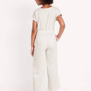 Short-Sleeve Button-Front Tie-Knot Jumpsuit for Girls