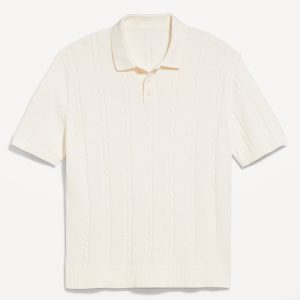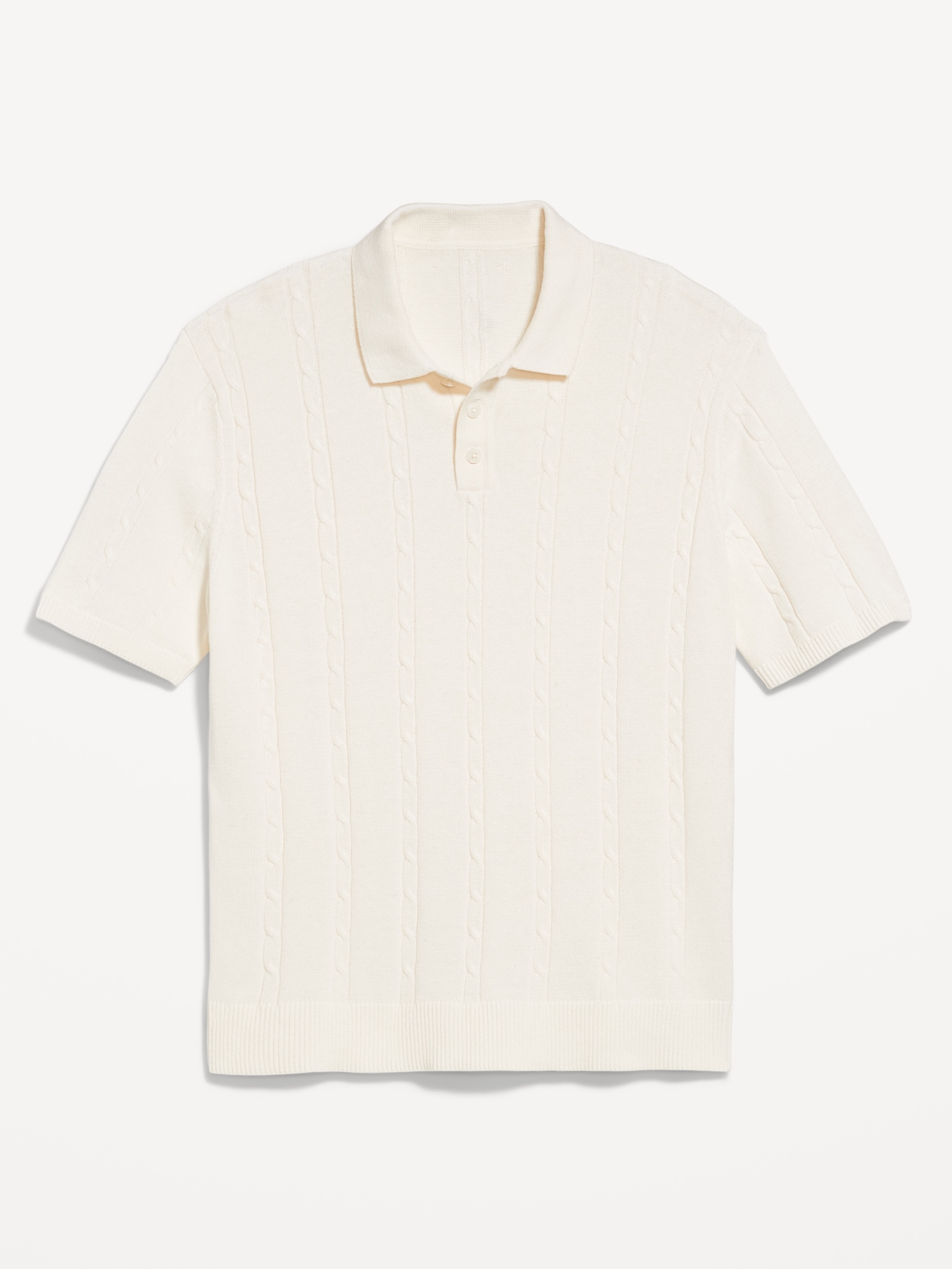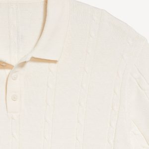 Short-Sleeve Cable-Knit Polo: spread collar, short sleeves, buttoned placket, pullover style, #802042