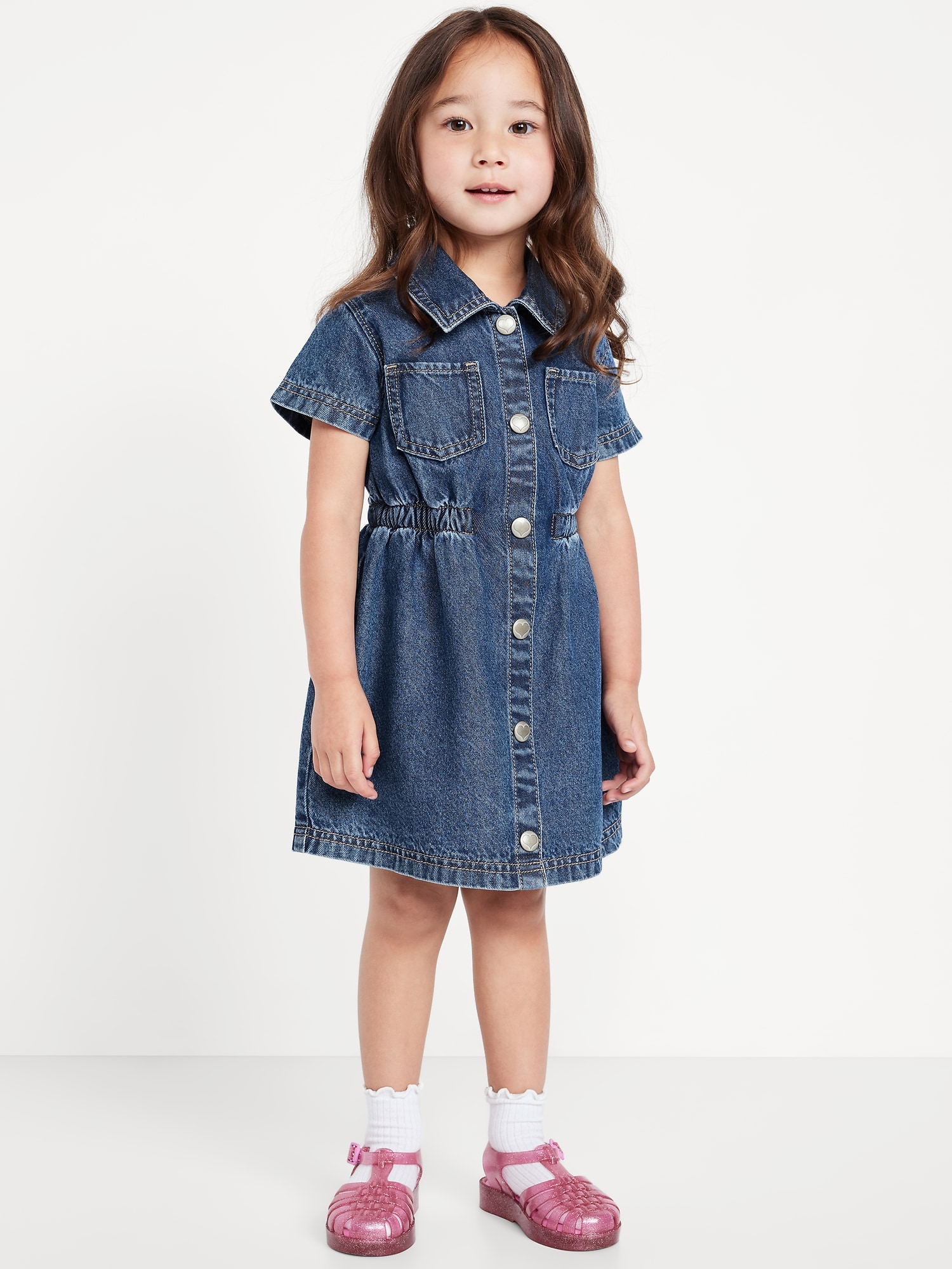 Short-Sleeve Cinched-Waist Jean Dress for Toddler Girls
