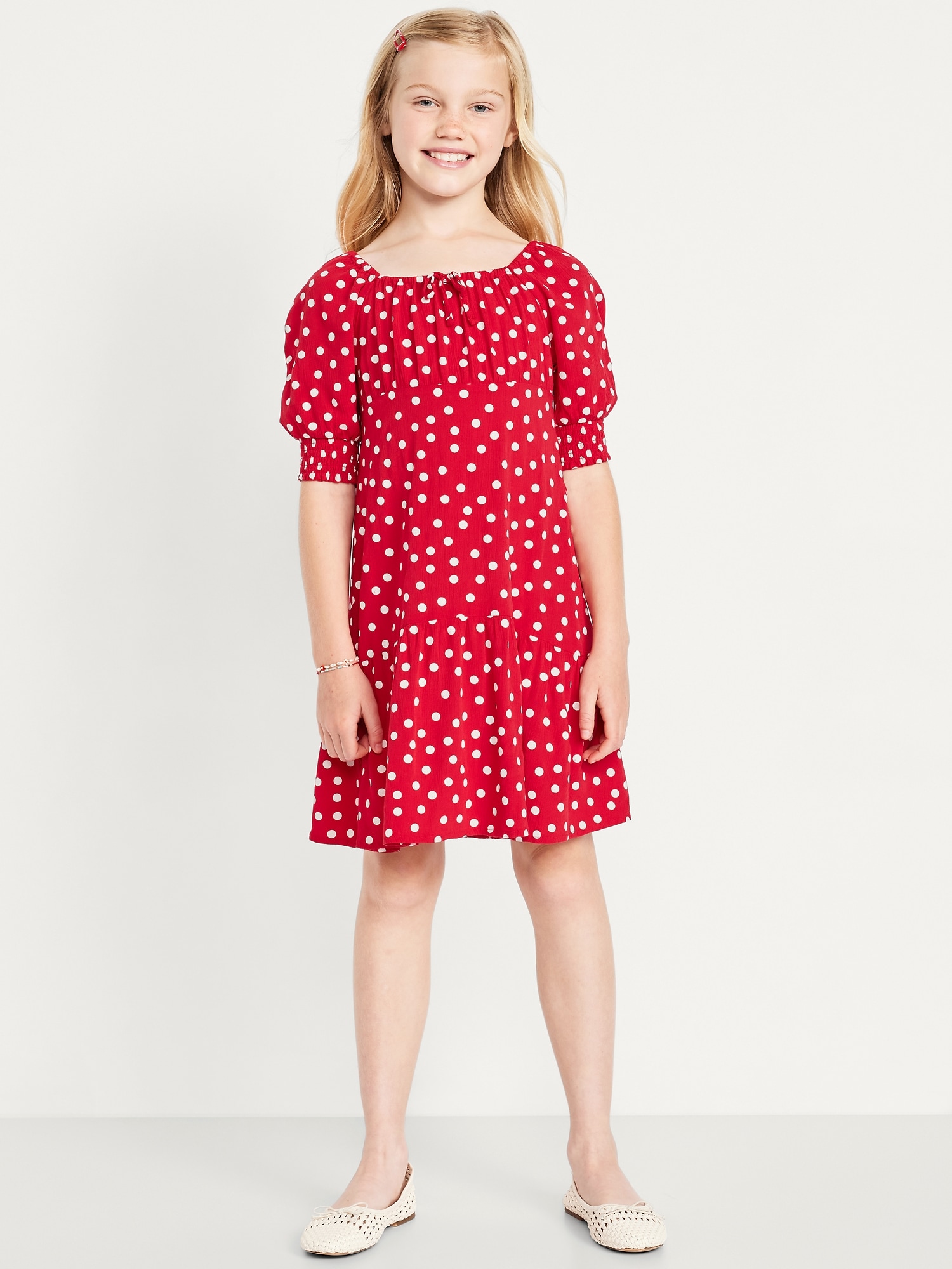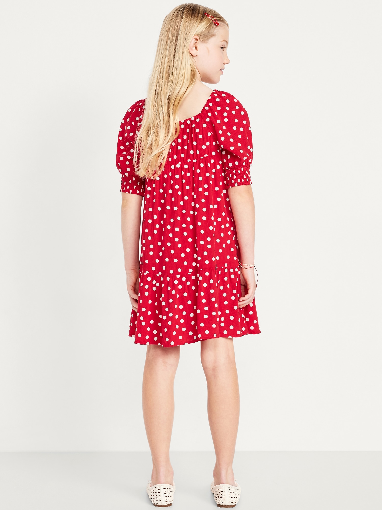 Short-Sleeve Crinkle Crepe Swing Dress for Girls