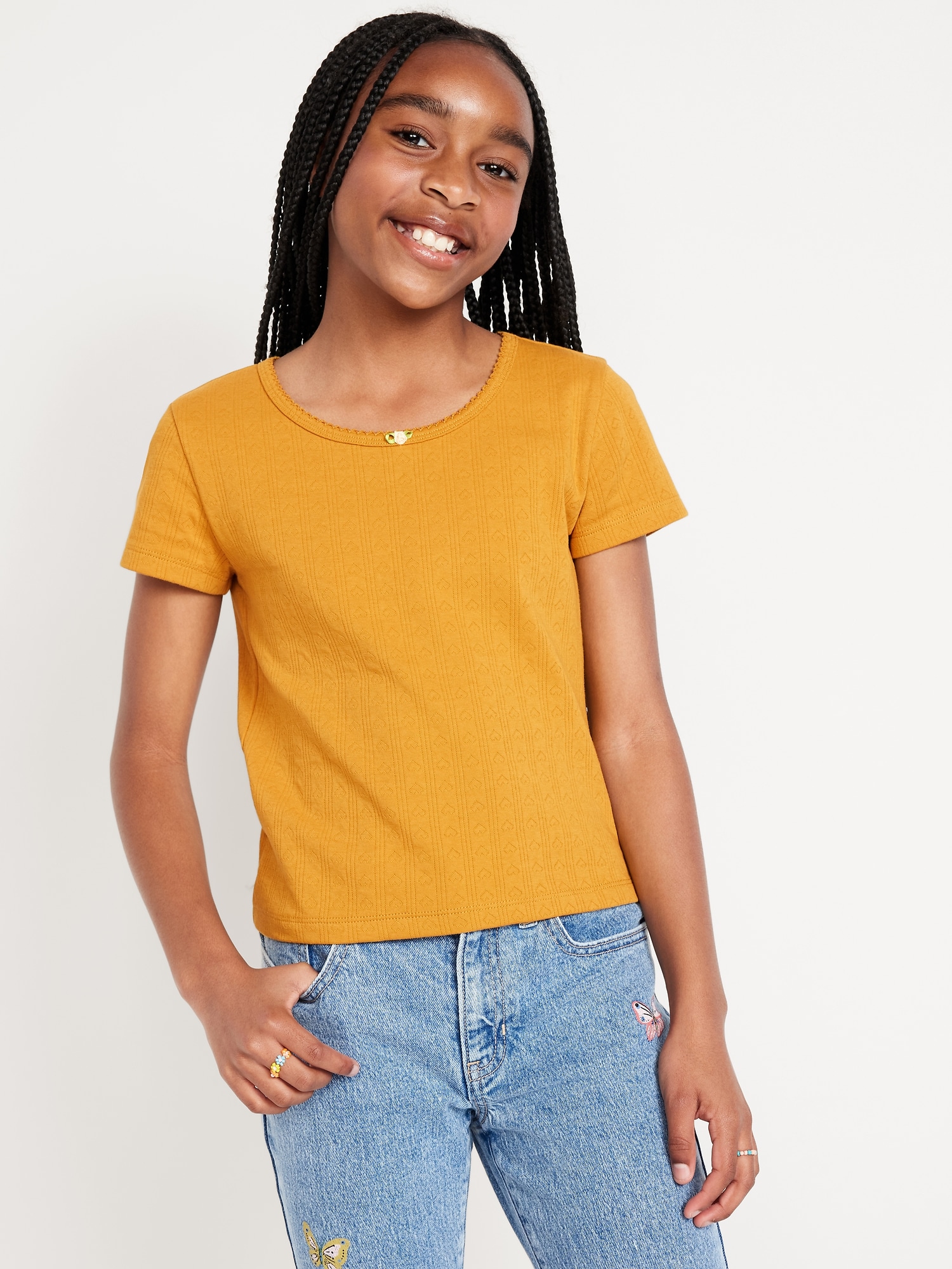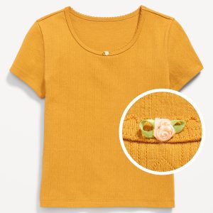 Short-Sleeve Pointelle-Knit Top for Girls