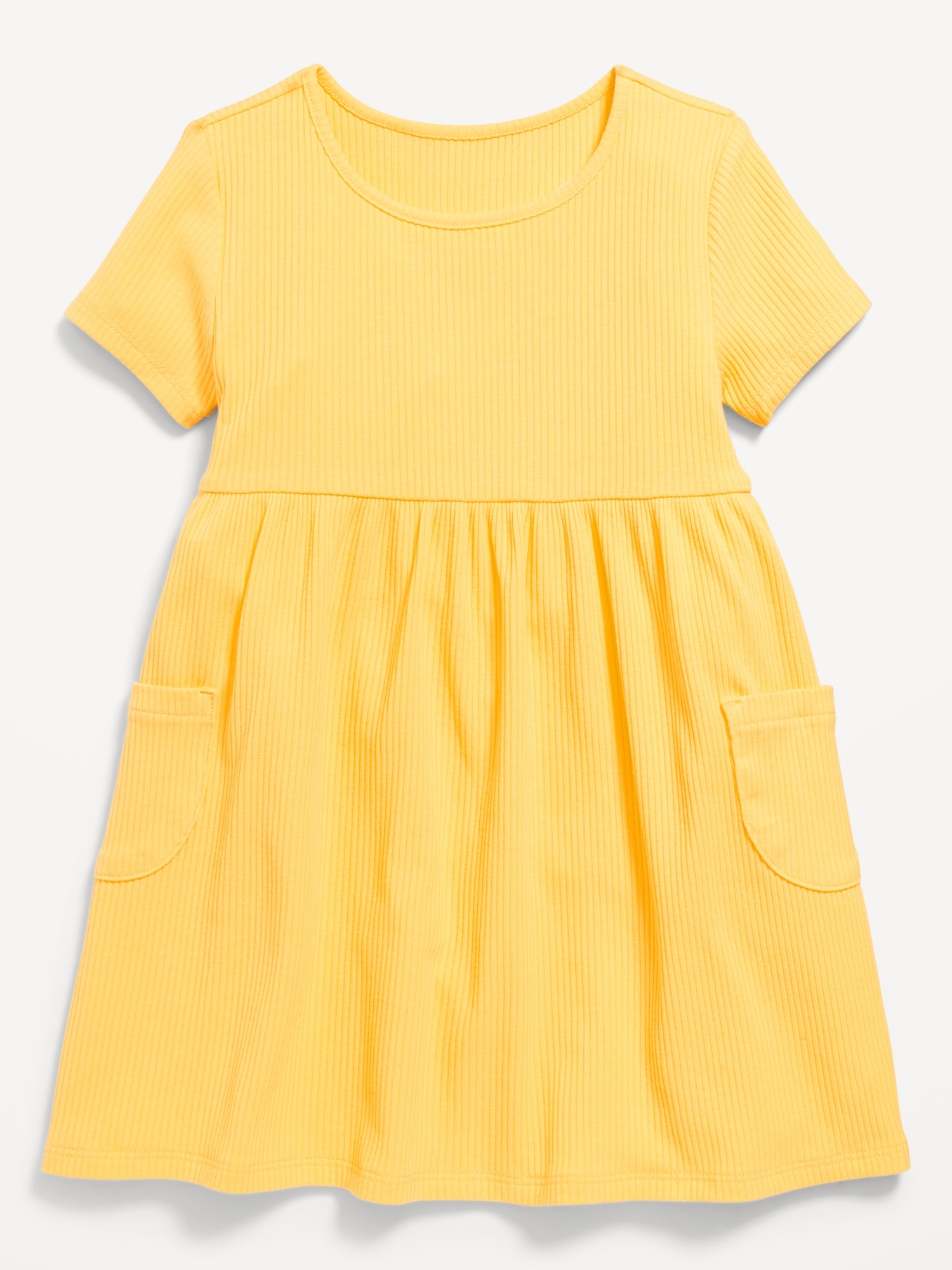 Short-Sleeve Ribbed Fit and Flare Pocket Dress for Toddler Girls