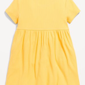 Short-Sleeve Ribbed Fit and Flare Pocket Dress for Toddler Girls