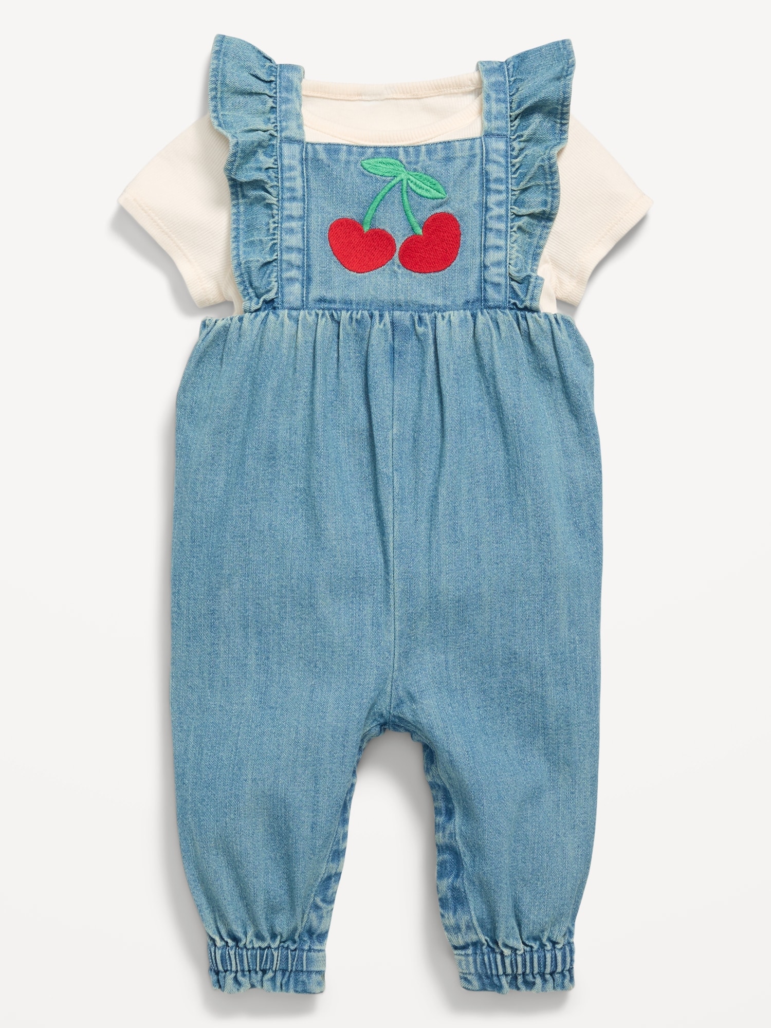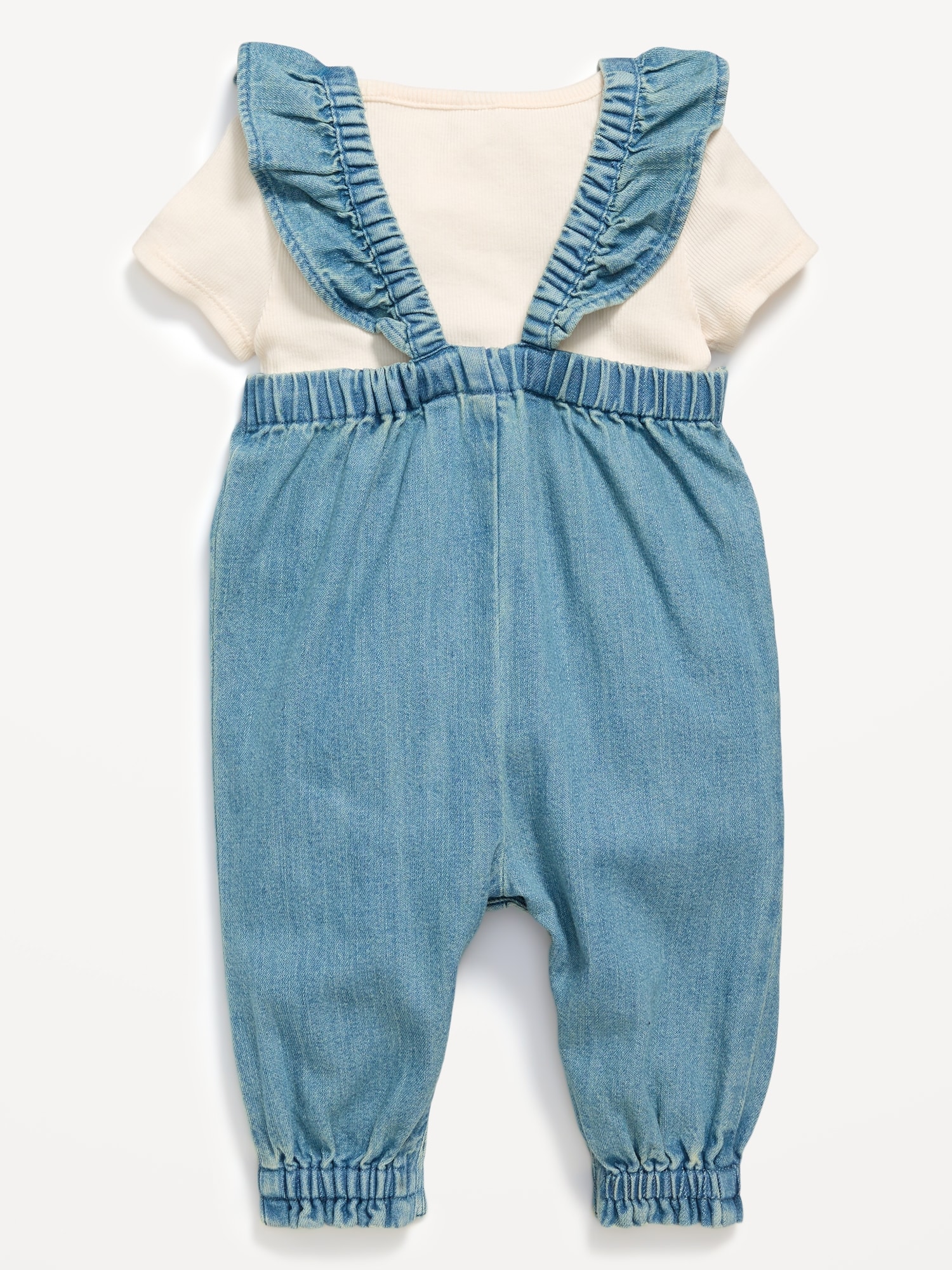 Short-Sleeve Ribbed T-Shirt and Chambray Jumpsuit Set for Baby