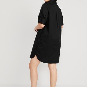 Short-Sleeve Shirt Dress: spread collar, elbow-length sleeves, full-button front, patch pocket, #796144