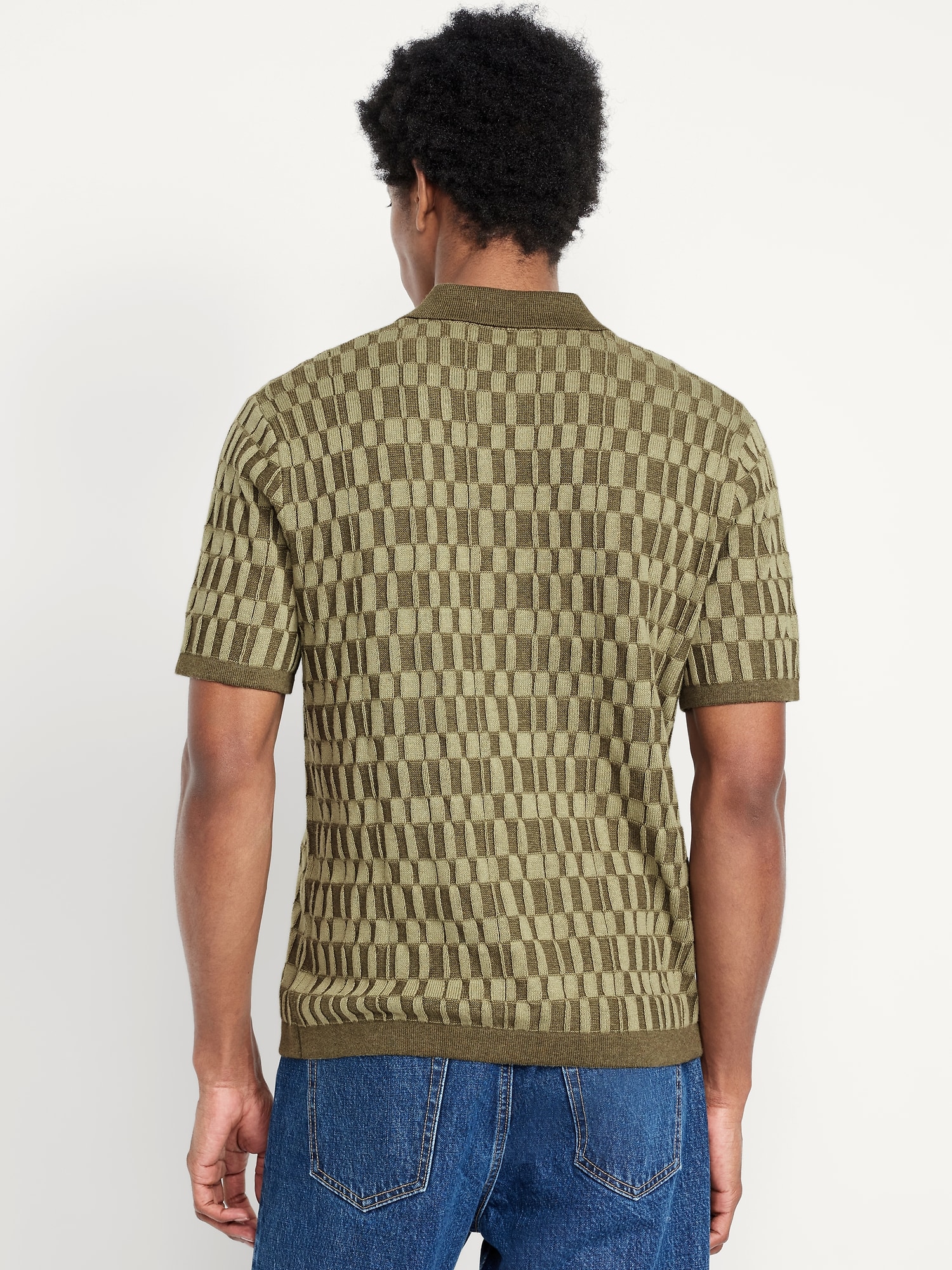 Short-Sleeve Sweater-Knit Polo: spread collar, short sleeves, buttoned placket, pullover style, #802042
