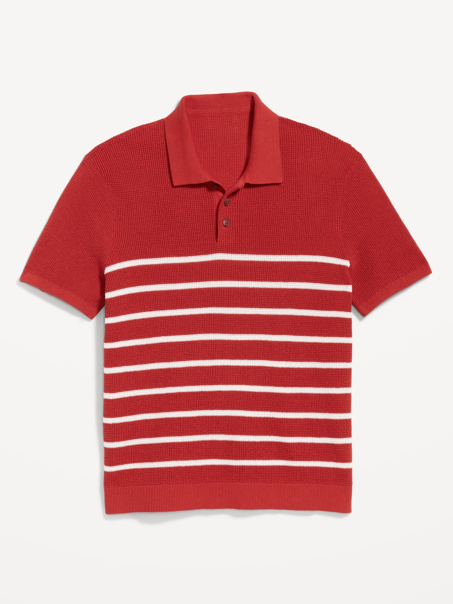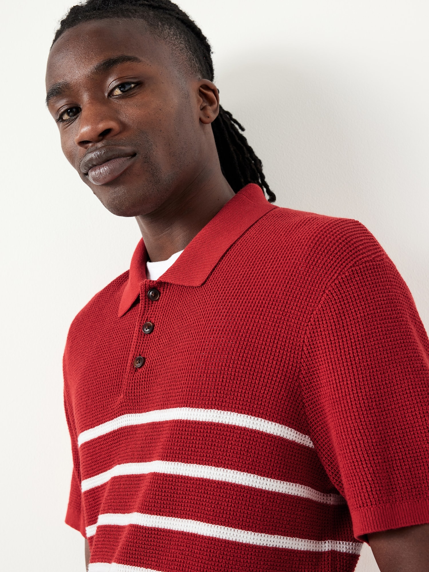 Short-Sleeve Sweater-Knit Polo: spread collar, short sleeves, buttoned placket, pullover style, #802042