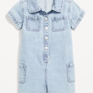Short-Sleeve Utility Jean Romper for Toddler Girls