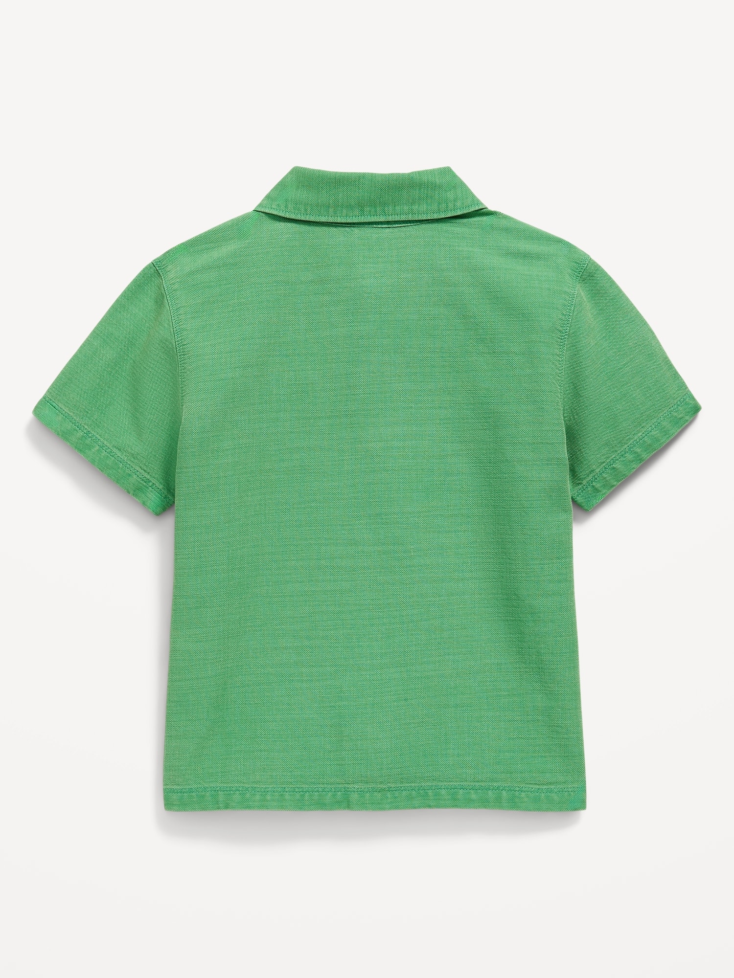 Short-Sleeve Utility Pocket Shirt for Toddler Boys: pointed collar, short sleeves, drop shoulders, utility patch pocket at chest, full length buttoned placket, #752762