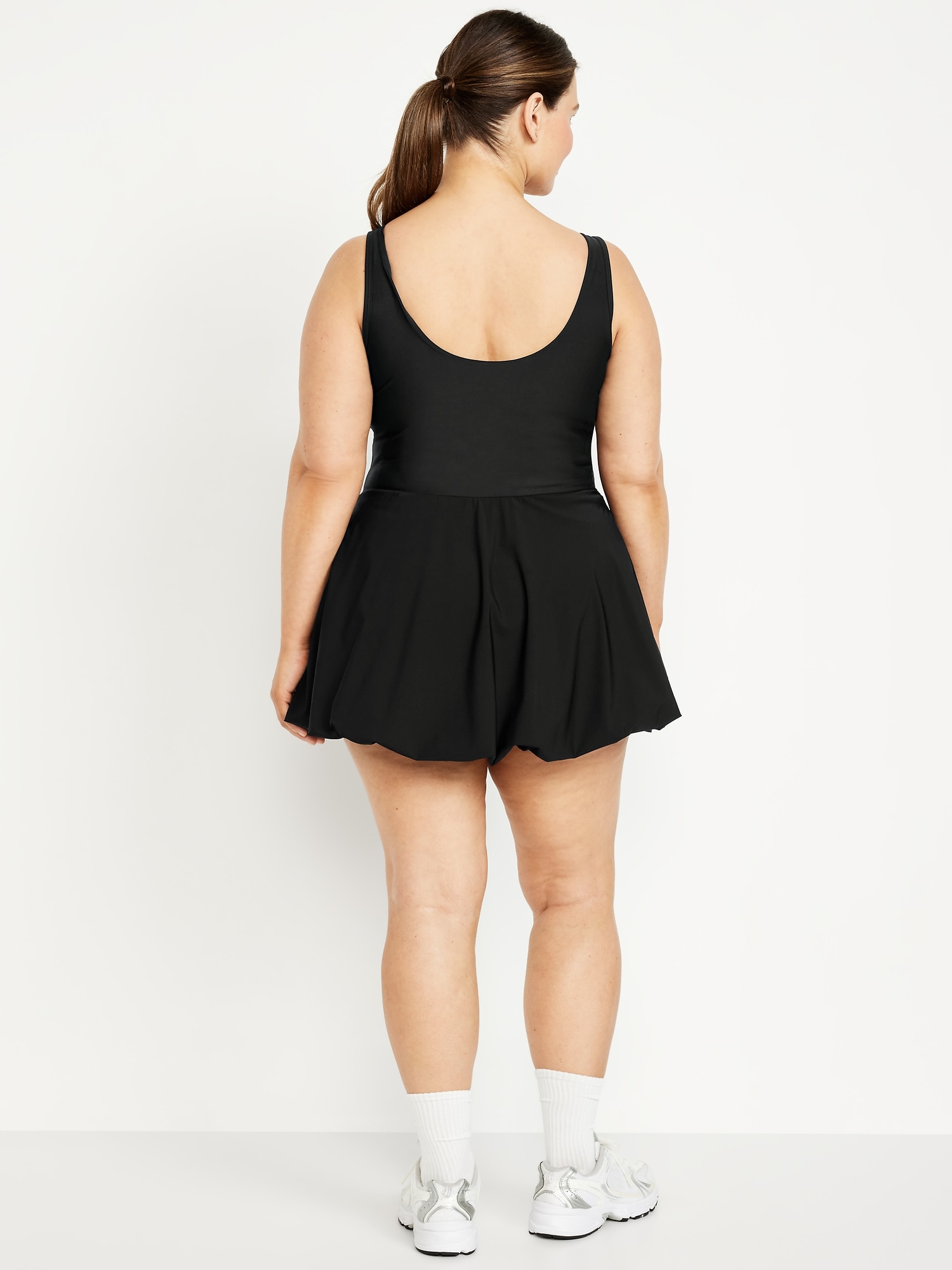 SleekTech Bubble Dress: Featuring SleekTech. Polished and lightweight, with serious stretch.square neck, scoop back, shelf bra, removable pads, go-dry wicks moisture, breathable, #791430