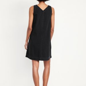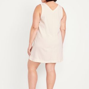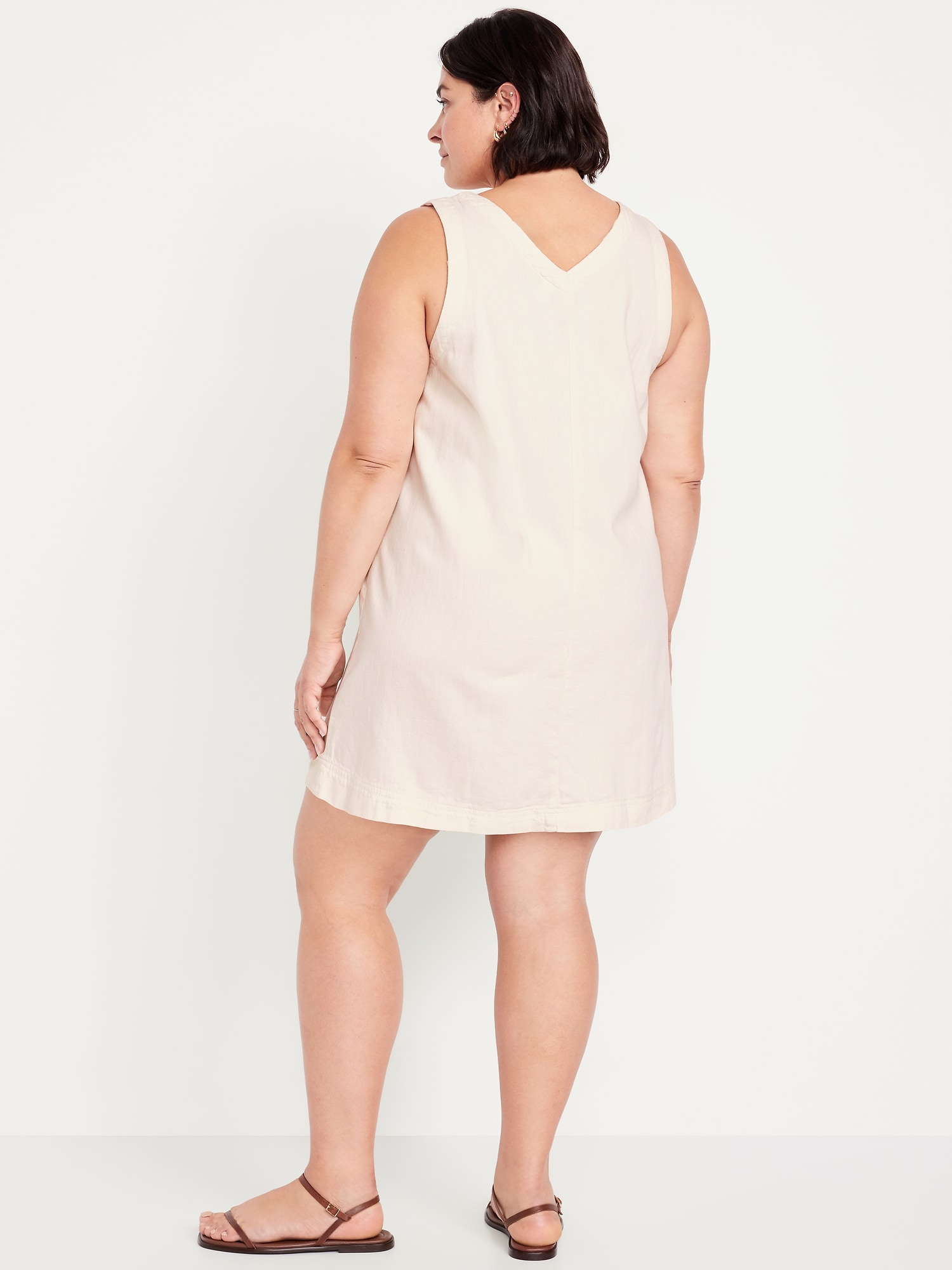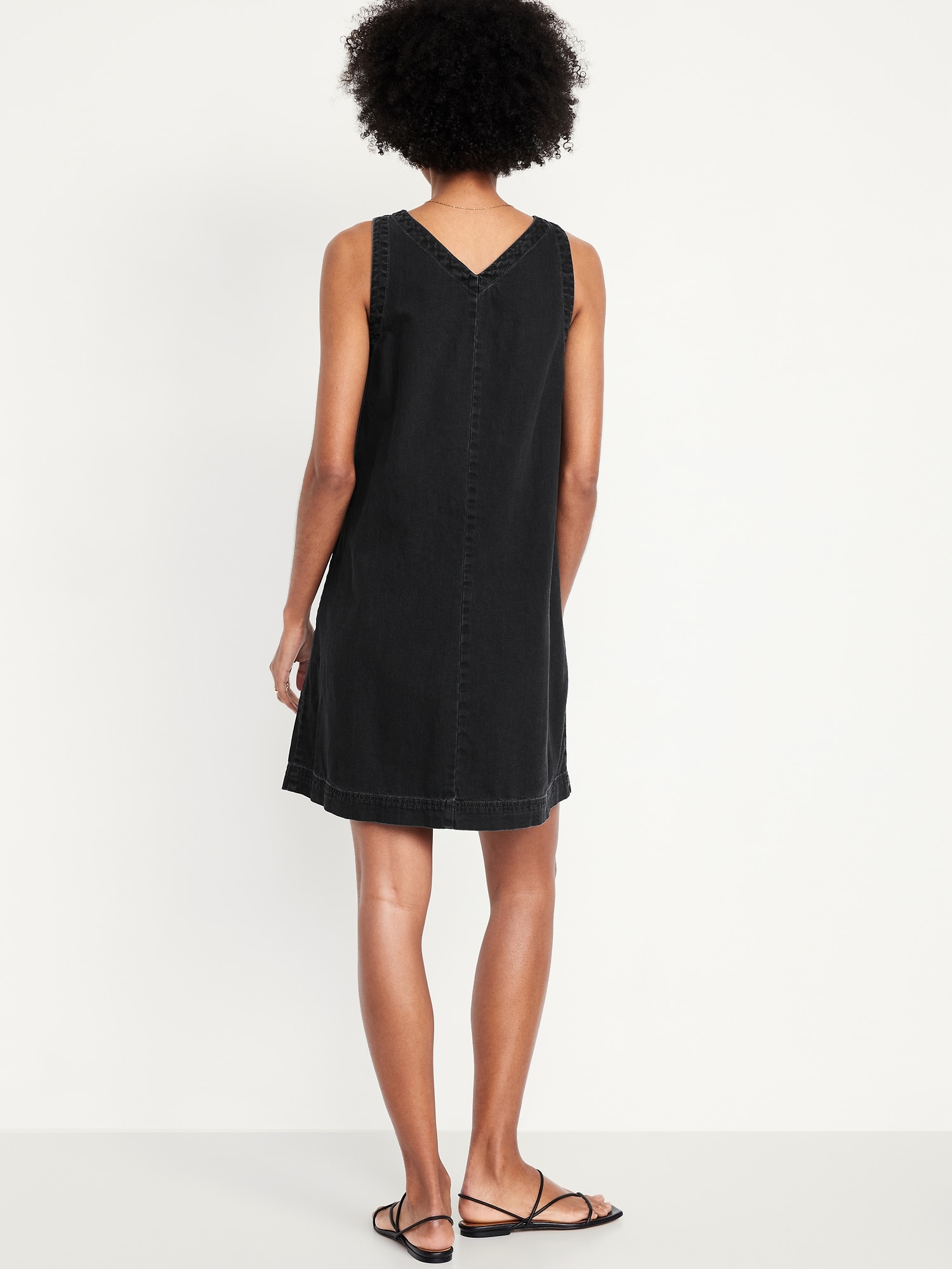 Sleeveless Button-Front Mini Dress: v-neck, wide straps, button front, patch pockets, #766910