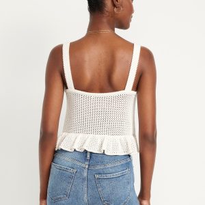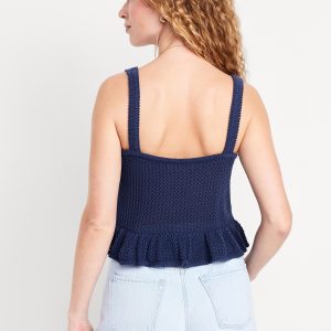 Sleeveless Open-Stitch Peplum Sweater