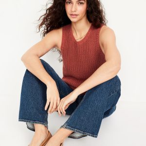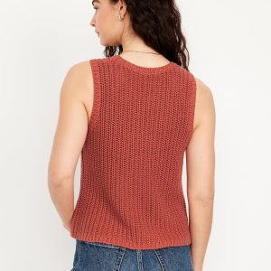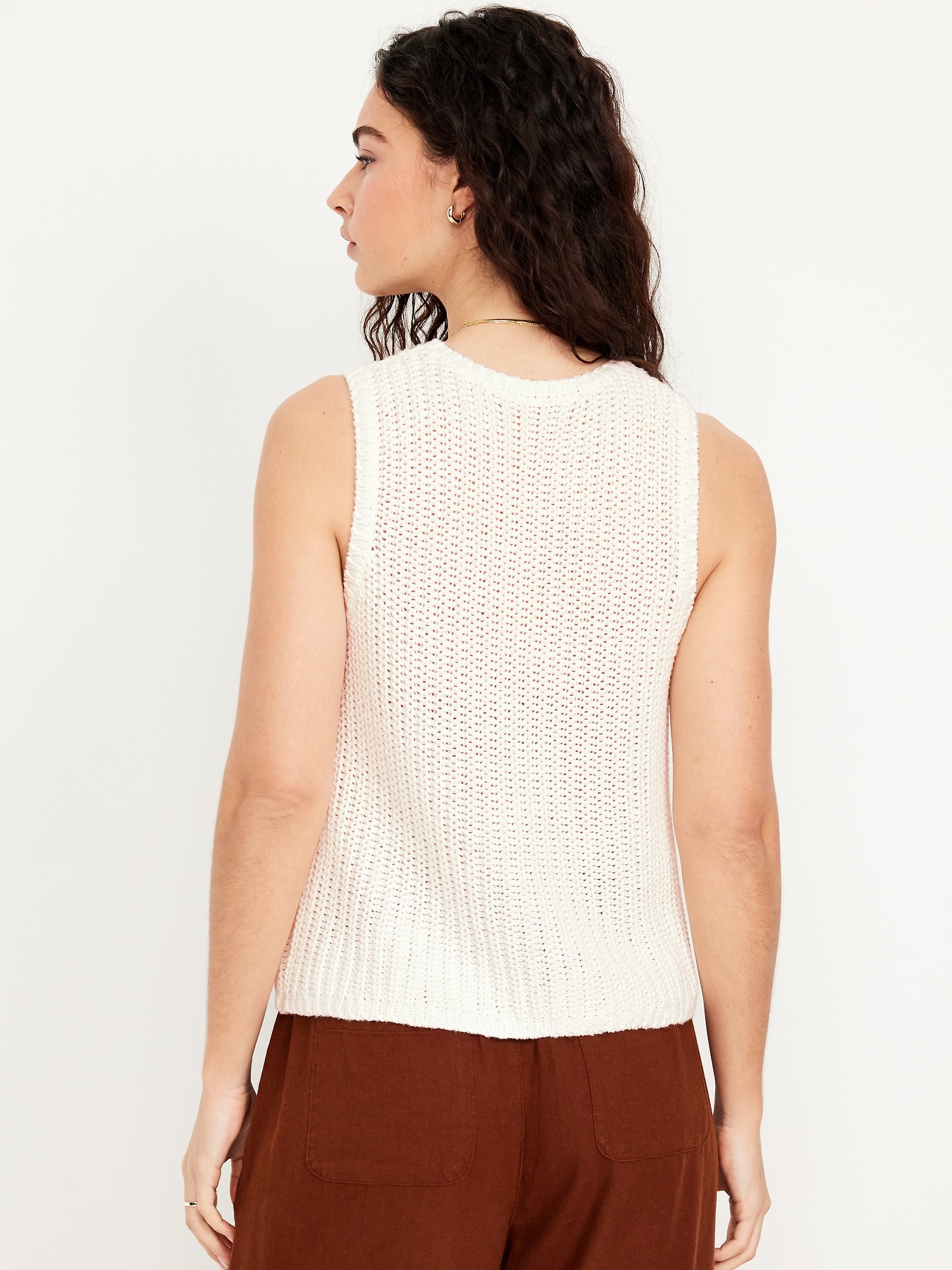 Sleeveless Open-Stitch Sweater: crew neck, sleeveless, pullover style, #664151