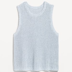 Sleeveless Open-Stitch Sweater: crew neck, sleeveless, pullover style, #664151