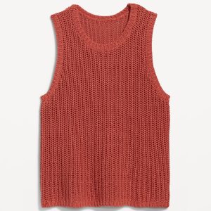 Sleeveless Open-Stitch Sweater: crew neck, sleeveless, pullover style, #664151