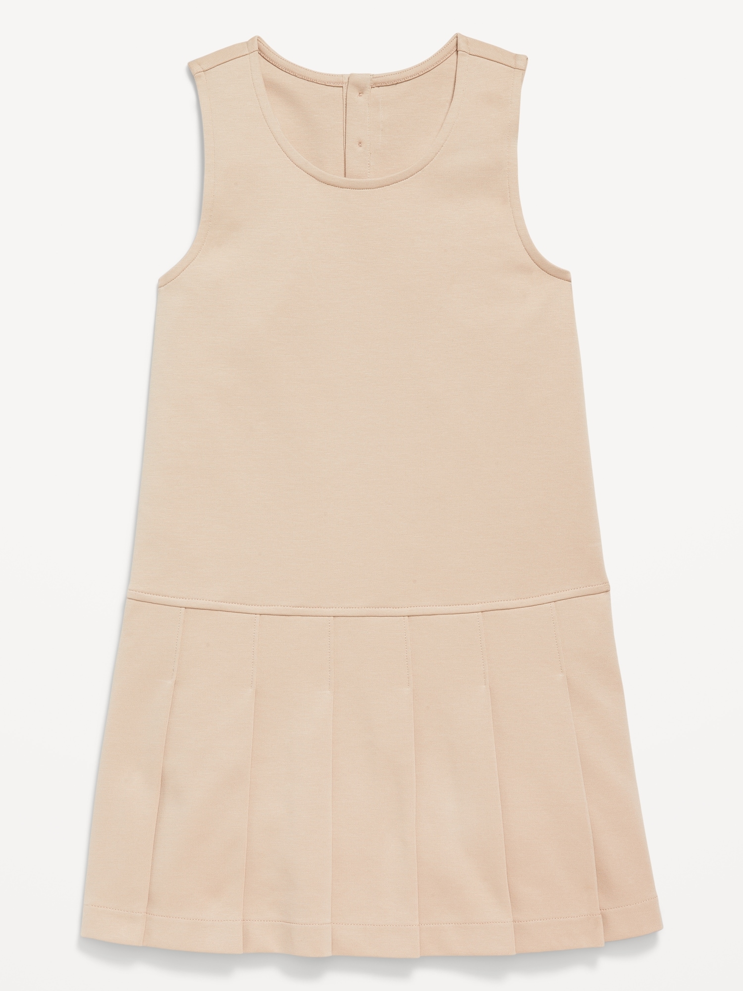 Sleeveless School Uniform Ponte-Knit Dress for Girls: rounded neckline, sleeveless, two-button placket at nape, drop waist, pleated skirt, #766631