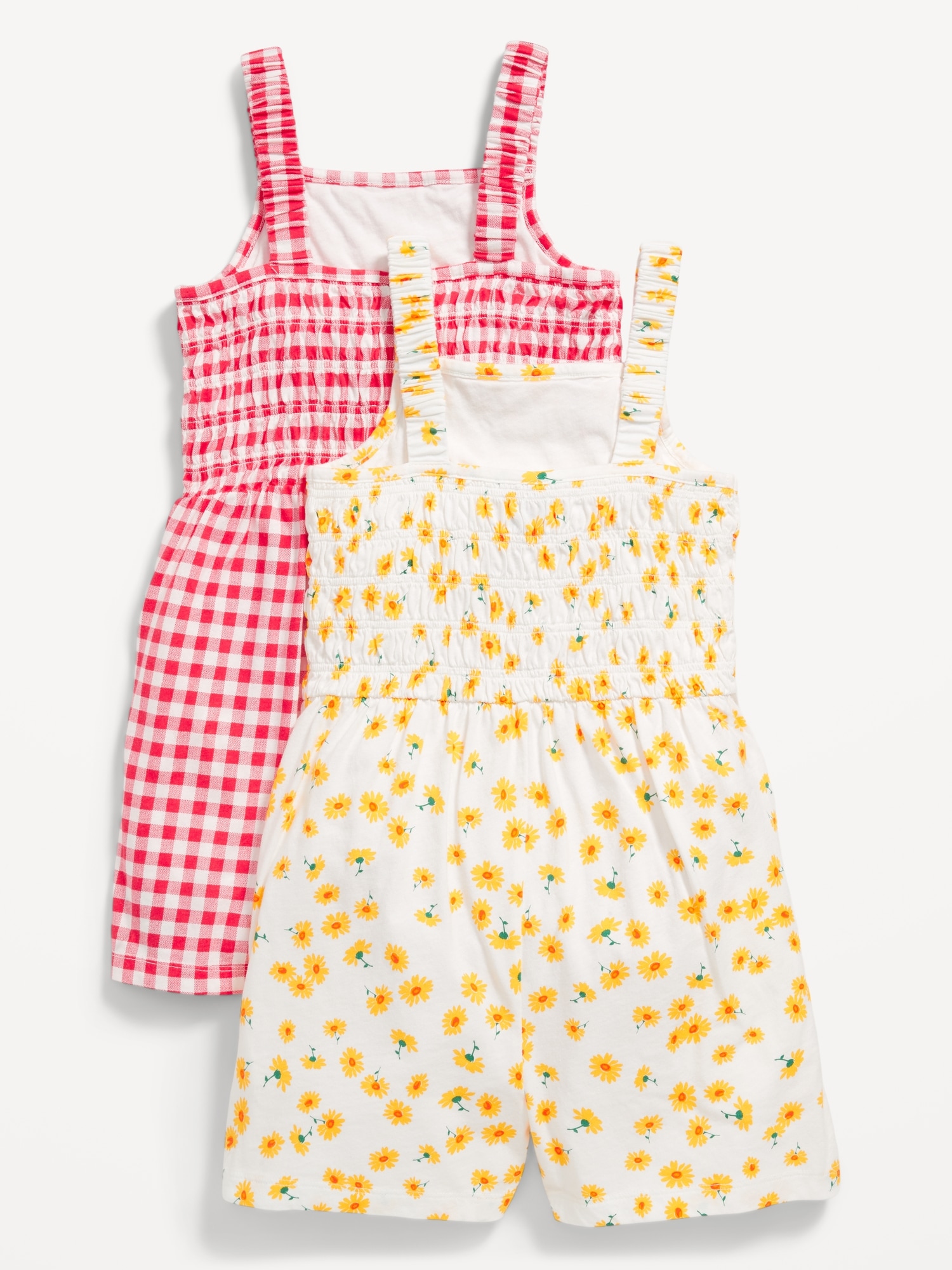 Sleeveless Smocked Romper 2-Pack for Girls: smocked bodice, wide elastic straps, side-seam pockets, #766664