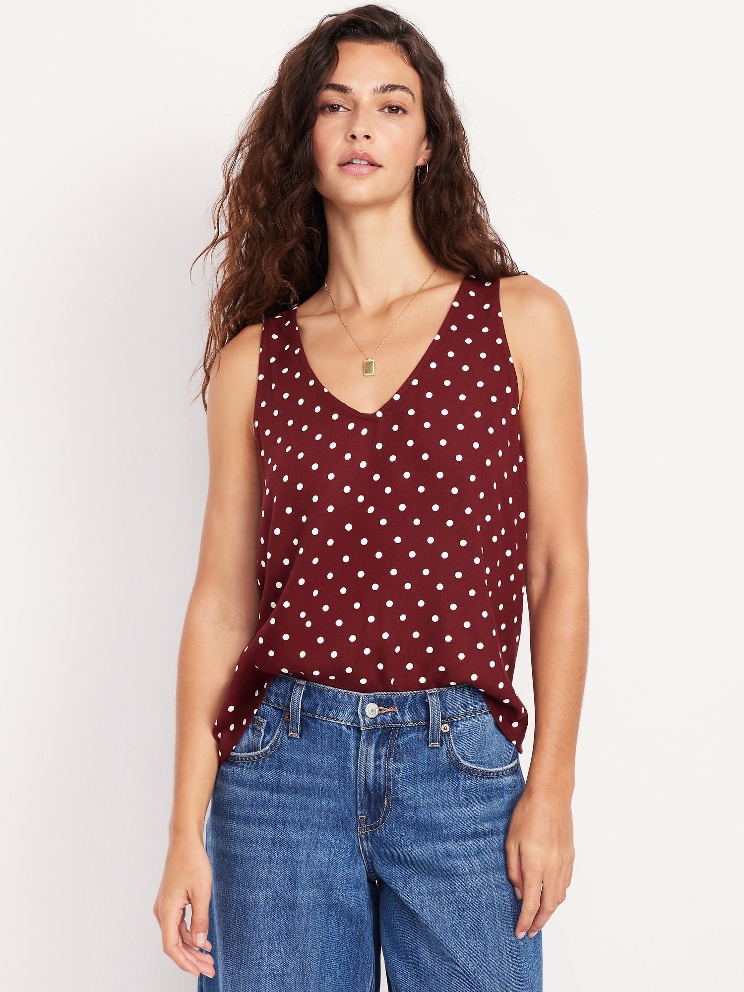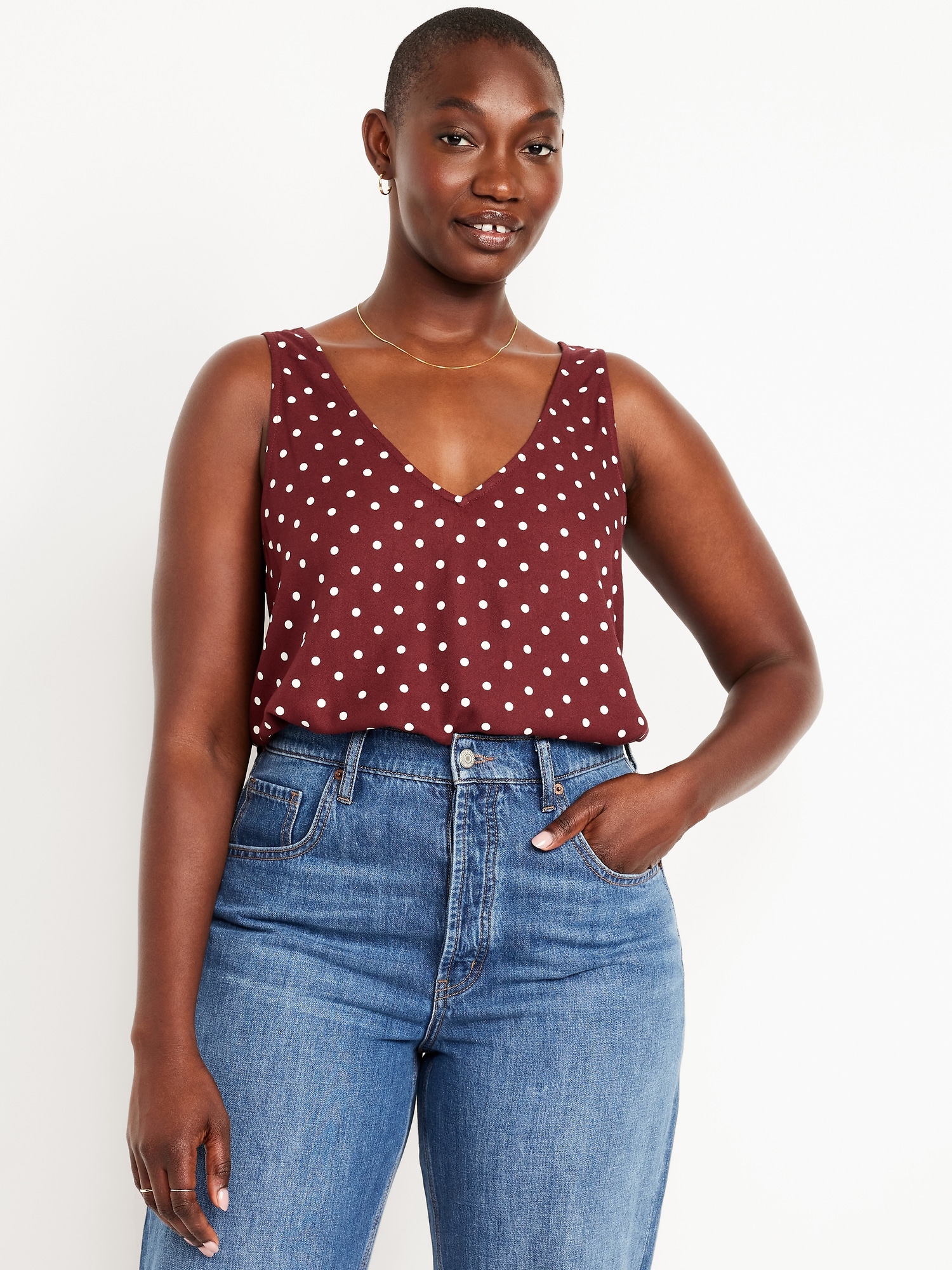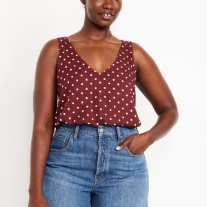 Sleeveless V-Neck Crepe Top: v-neck and v-back, wide straps, #805743