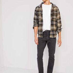 Slim Built-In Flex Five-Pocket Pants: Slim through the hip and thigh, in a soft-washed fabric with a hint of stretch.button front, zip fly, front scoop pockets and coin pocket, back patch pockets, #848863