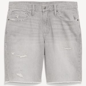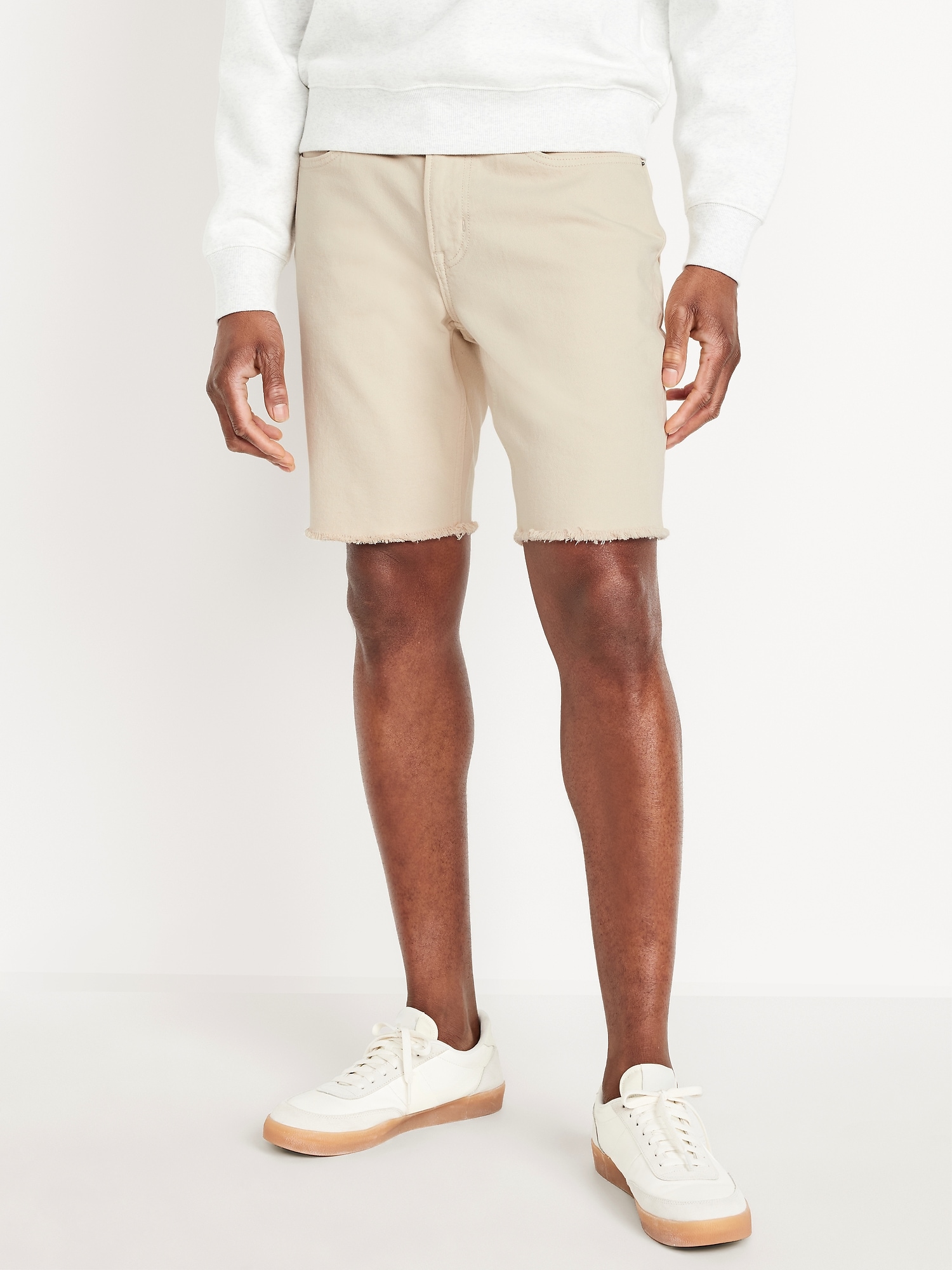 Slim Built-In Flex Jean Raw-Edge Shorts — 9.5-inch inseam