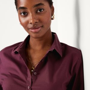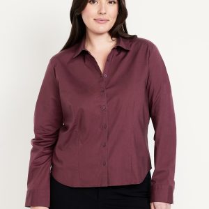 Slim Button-Down Shirt: spread collar, long sleeves, buttoned cuffs, button front, striped print, curved hem, #545902