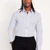 Slim Button-Down Shirt: spread collar, long sleeves, buttoned cuffs, button front, striped print, curved hem, #545902