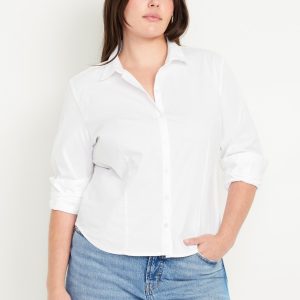 Slim Button-Down Shirt: spread collar, long sleeves, buttoned cuffs, button front, striped print, curved hem, #545902