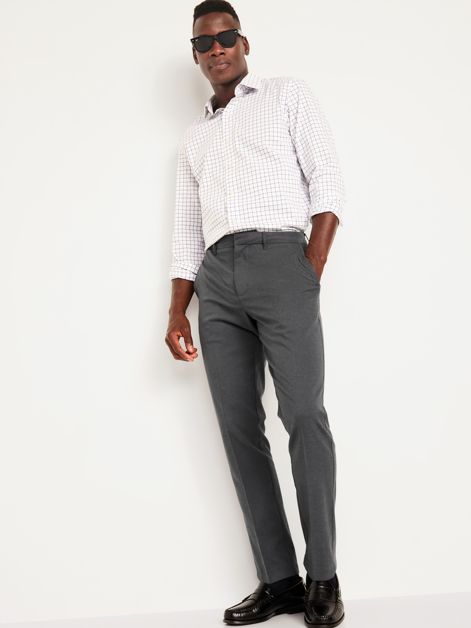Slim Dress Pants: hook-and-eye closure, belt loops, zip fly, hip pockets, button-welt back pockets, seamed front leg, #805048