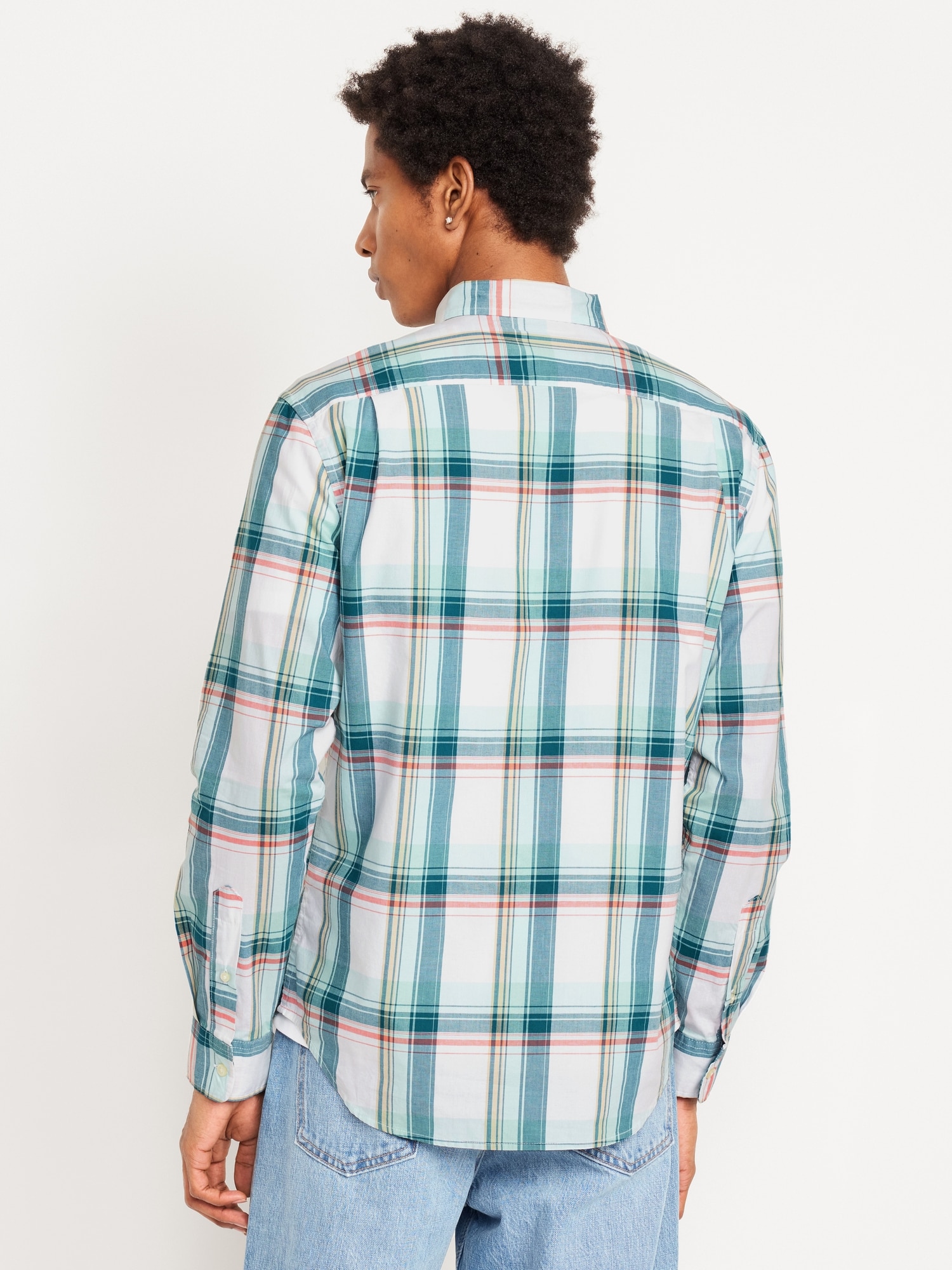 Slim Fit Printed Everyday Shirt: The Everyday Shirt is the button-down that puts in work eight days a week.spread button-down collar, long sleeves with buttoned cuffs, full-button front, patch chest pocket, vertical stripe or plaid print, #802077